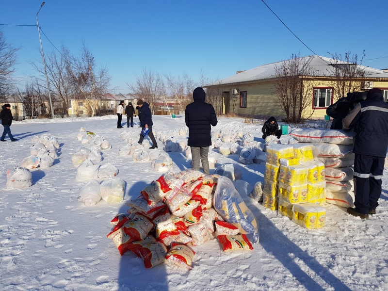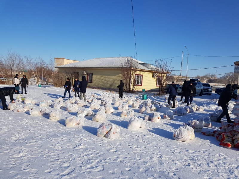 Азық-түлікті мұқтаж отбасылардың үйлеріне таратып беруге келген мешіт жамағаты жүректерінің жылуымен ауа райының суықтығында сезбеді.