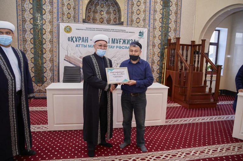 Теміртау қаласы «Әлихан Бөкейхан» атындағы орталық мешітінде «Құран – мәңгі мұғжиза» атты марапаттау рәсімі өтті.