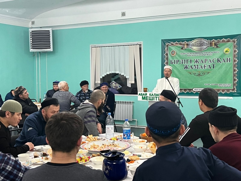 ҚМДБ-ның Қарағанды облысына қарасты Абай аудандық орталық мешітінің ұйымдастыруымен "БІРЛІГІ ЖАРАСҚАН ЖАМАҒАТ" атты рухани кеш болып өтті. "Ислам-ынтымақ және бірлік діні" жылы аясында өткен шараның негізгі мақсаты жамағаттын бірлігің бекіту. Шара барысында ауыз ашарға дастарқан жайылып, ас садақа жасалды. Рухани шараға РАНТ мүшесі Теміртау қаласы "Жақып Ақбай" мешітінің имамы Жұмаділда Елдос Қуандықұлы мен Қарағанды облысы орталық "Әнет Баба" мешітінің ұстазы Рымкулов Сұлтан қатысты. Жиналған жамағатты әсерлі уағызымен баураған Елдос Қуандықұлы рамазан қарсанында оразаға байланысты көкейде жүрген жамағат сұрағына жауап берді. Өз кезегінде облыстық мешіт ұстазы Рымкулов Сұлтан жиналған жамағаттын білімдерін шындау үшін сұрақ жауап жүргізді. Толыққанды нақты жауап берген жамағатқа ұйымдастырушы тарапынан әзірленген сыйлықтар үлестіріп берді. Сонымен қатар жиналған жамағатқа діни кітапшалар таратылды. Аталмыш шараға дән риза болған жамағат Абай ауданы имамына алғыстарың жеткізді. Рухани шарадан үлкен әсер алған жамағаттың атынан мешіт ақсақалдары Алпыс қажы қонақтарға қонақ кәде дәстүрге сай шапан жауып ақ баталарын берді.