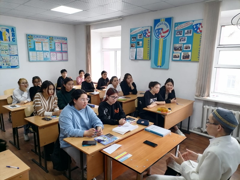 Қарағанды облысына қарасты Саран қаласында студеттермен өткен кезекті кездесу өз жалғасын тапты. Бұл жолы Саран қалалық мешітінің найб имамы Мәулен Әбілхайыр Абай Құнанбаев атындағы Саран жоғары гуманитарлық-техникалық колледжінің шет тілі бөлімінің 1,2,3,4 курста оқитын студенттерімен кездесу өткізді. Шара барысында "Көркем мінез", "Отбасындағы - ихсан" , "Рамазан айындағы шынайылық" тақырыптары арнайы түсіндірілді. Іс-шара сұрақ-жауап арқылы жалғасып, діни мағлұматтар берілді.