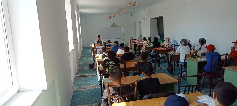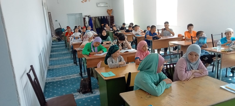 Балқаш қалалық мешітінде де «Имани жаз» сауат ашу курсы екі топ бойынша жалғасуда. Бірінші топтағылар биыл жазғы курсқа жаңадан келген болса, екінші топтағылар бұрын келіп жүрген балалар.