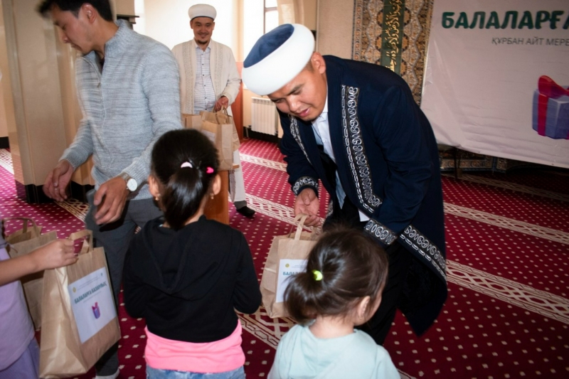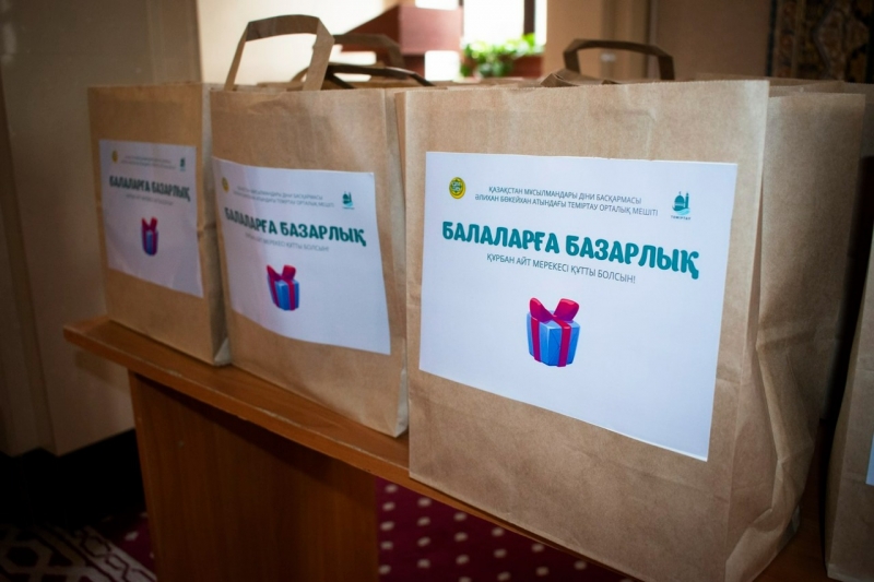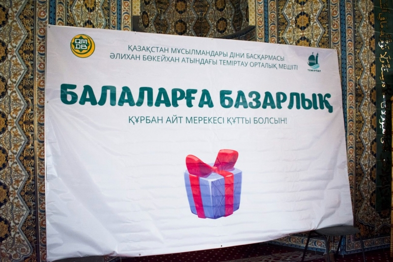 Әлихан Бөкейхан атындағы Теміртау орталық мешіті Құрбан айт мерекесіне орай балаларға сыйлық жасады. Теміртау қаласының Бас имамы Естай Айтуғанұлы бастаған мешіт имамдары бүлдіршіндерге жалпы діни мерекелердің мән-маңызын түсіндіре келе, арнайы дайындалған сыйлық қорапшаларын үлестірді.