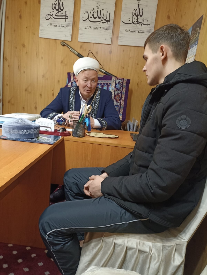 Владислав Дмитриевичке мешіт азаншысы Байкешев Нургали Беркулович кәлима шаһадатын айтып, Ислам дінінің құныдылықтары туралы насихат айтты.