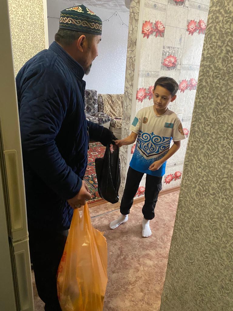 Жыл басынан бері Қарағанды облысы бойынша үздіксіз жалғасып келе жатқан игі шара бұл жолы Топар кенті «Жұмабек Тәшен» мешітінің ұйымдастыруымен жүзеге асты. Аймақ имамы Ақмағанбет Мурсали Қаленұлы әлеуметтік көмекке мұқтаж бес отбасыға азық түлік үлестірді. Сонымен қатар, мешітке келген бір жолаушыға қаржылай көмек көрсетті.