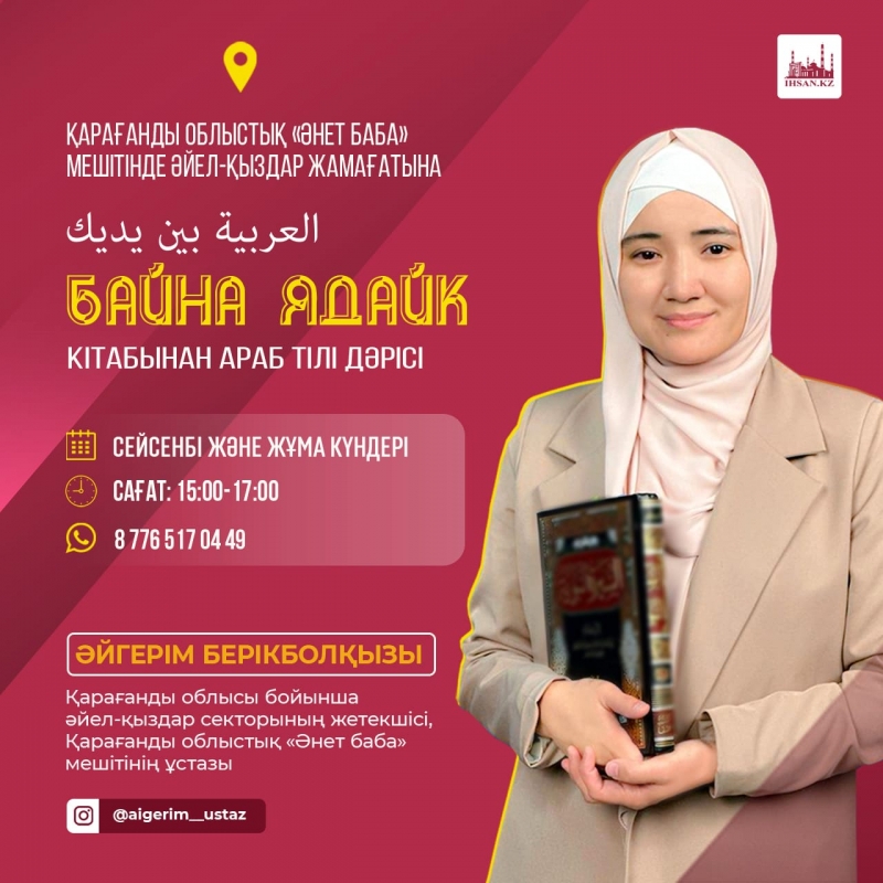 ҚМДБ-ның Қарағанды облыстық «Әнет баба» мешітінде әйелдер жамағатына әлемге танымал медреселер мен діни оқу орындарында оқытылатын «Байна ядайк» кітабы бойынша дәріс басталды.