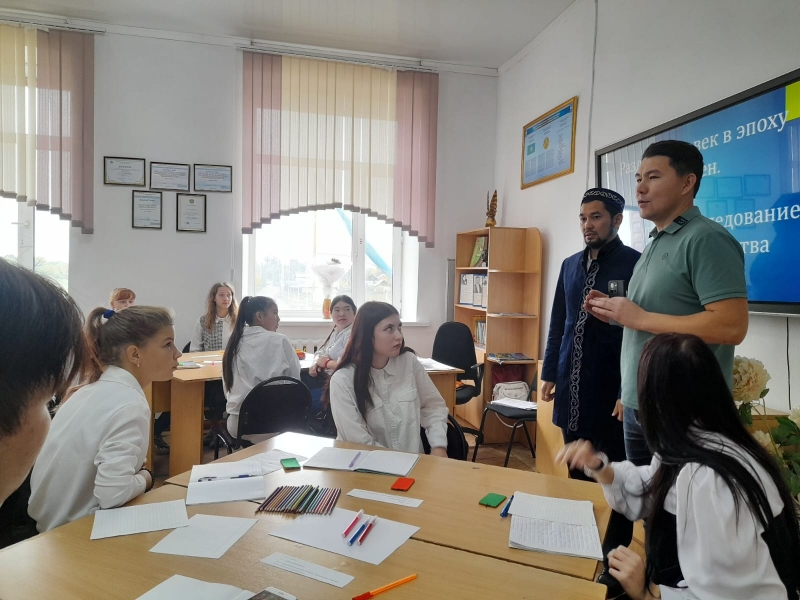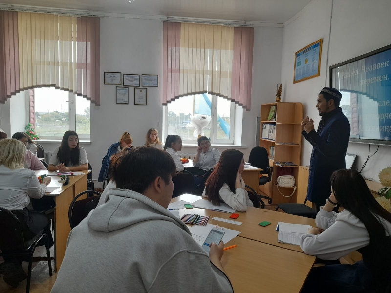 Саран қалалық мешітінің имамы Нұржігіт Оразалыұлы «Абай Құнанбаев» атындағы Саран гуманитарлы-техникалық колледжінің студенттерімен кездесу өткізді.