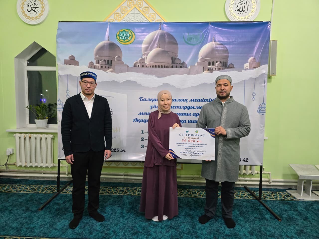 Балқаш қалалық мешітінің имамы Қалдарбеков Нұрболат Сейлханұлының ұйымдастыруымен 25 қазан – Республика күніне орай мешіт жамағаты арасында ақида пәнінен білім сайысы өткізілді.