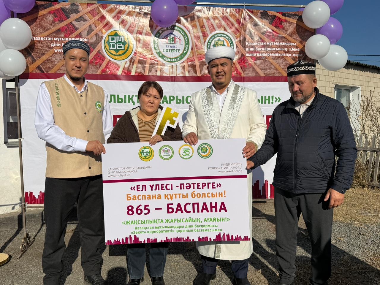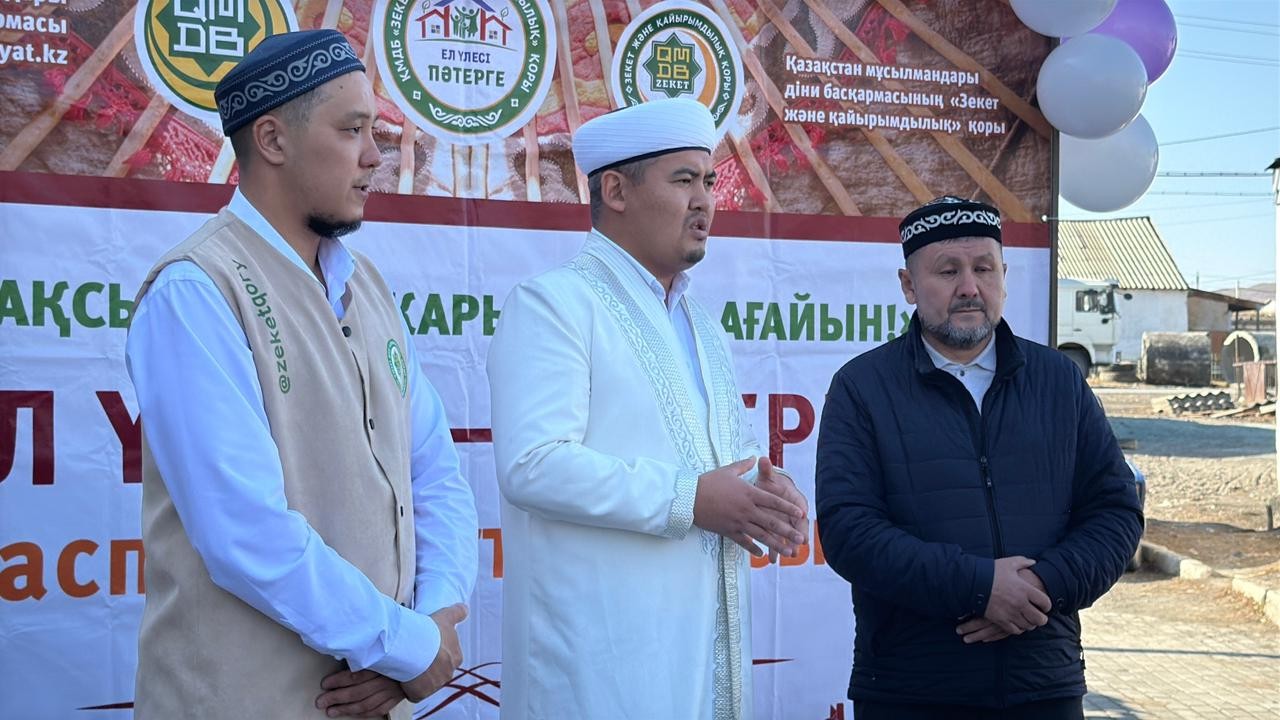 ҚМДБ «Зекет және қайырымдылық» қорының Қарағанды облысы бойынша өкілдігі және жергілікті кәсіпкер азаматтардың қолдауымен өткен салтанатты шараға ҚМДБ-ның Қарағанды облысы бойынша бас имамы Естай Айтуғанұлы қатысып, қоныс иелерін қуаныштарымен құттықтап, шаңырақтарына құт-береке тіледі.