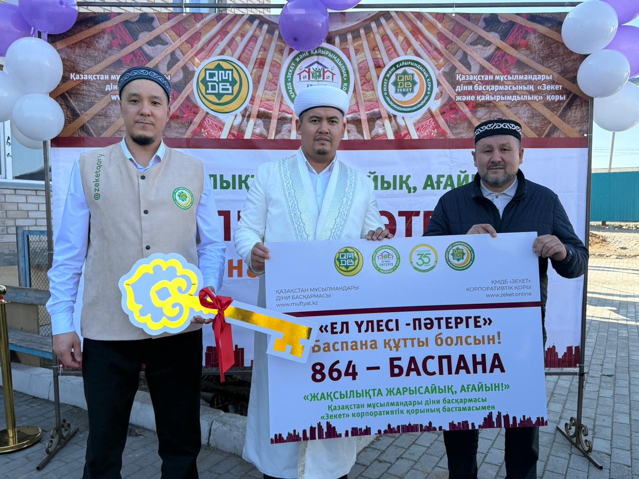 Жоба аясында табыс етілген 864-қызметтік пәтер Шет аудандық «Жанқұтты би» мешітіне берілді. Ал 865-үйдің кілті Шет ауданының тұрғыны, бес баланы тәрбиелеп отырған жалғызбасты көпбалалы анаға табысталды.
