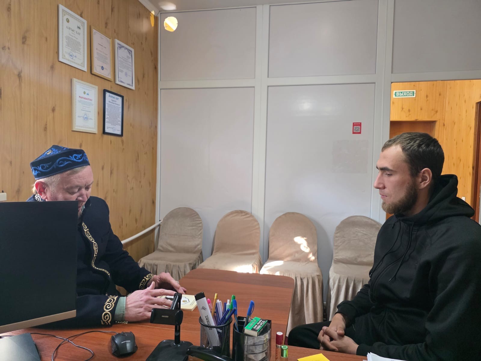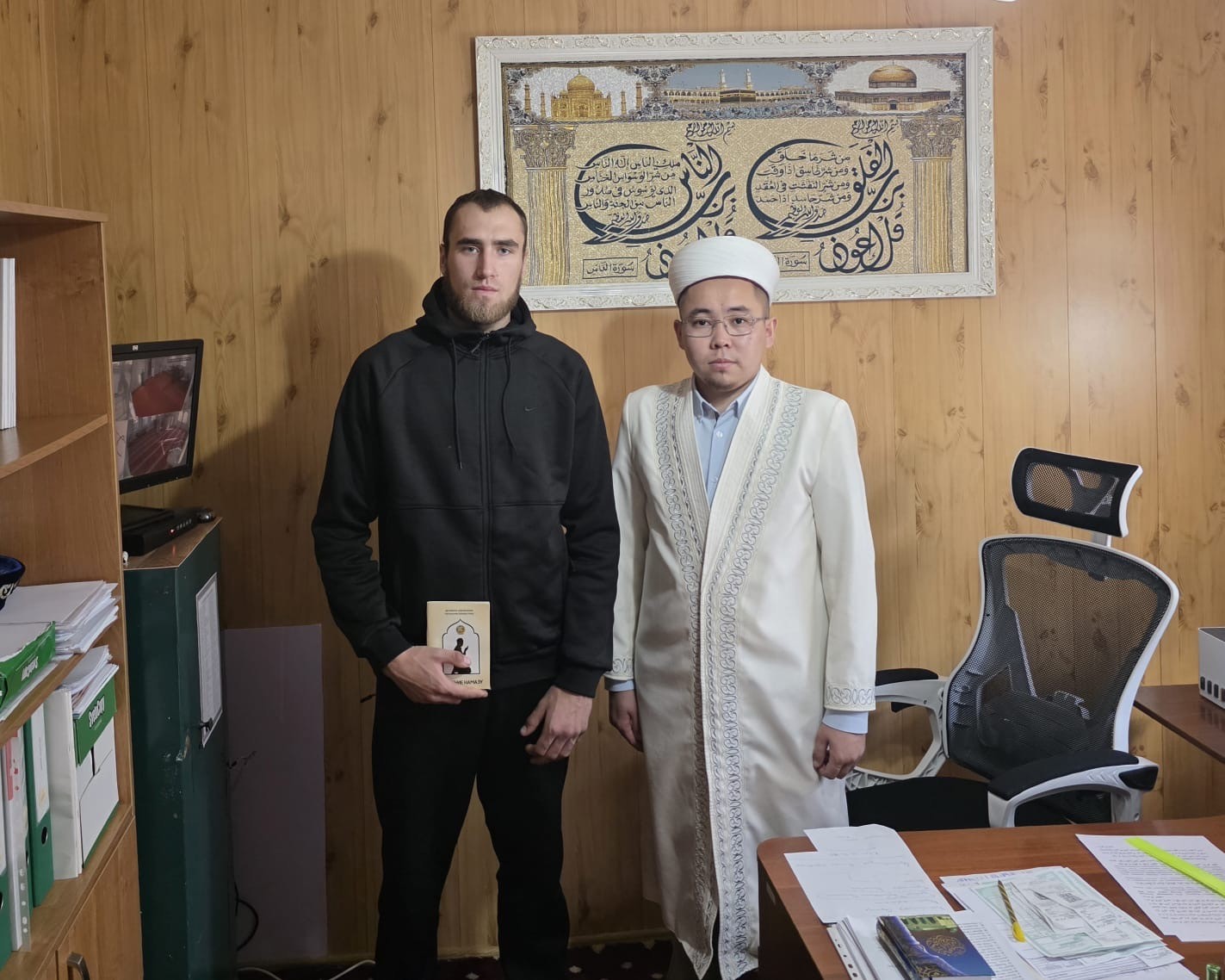 Жаңа мұсылман бауырымызға мешіт атынан орыс тіліндегі «Намаз оқып үйренейік» атты кітапша сыйға тартылды.