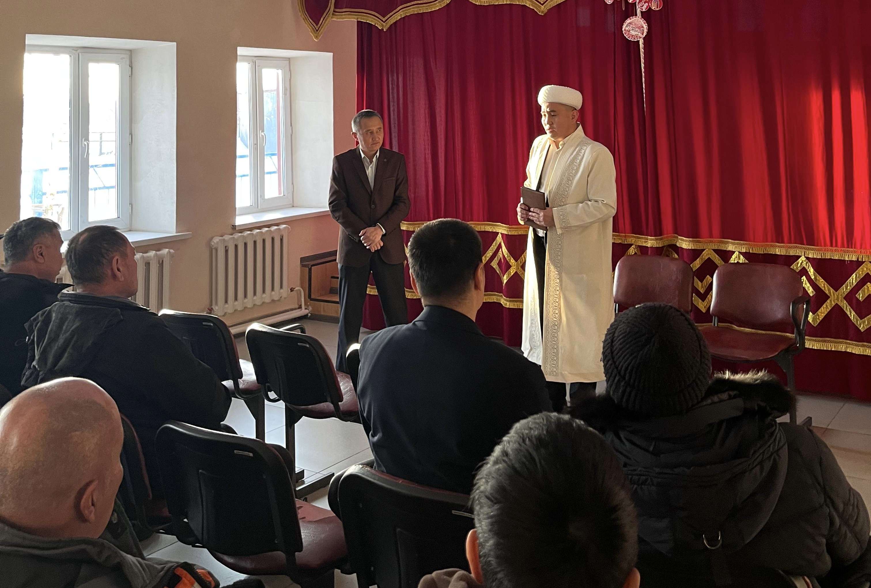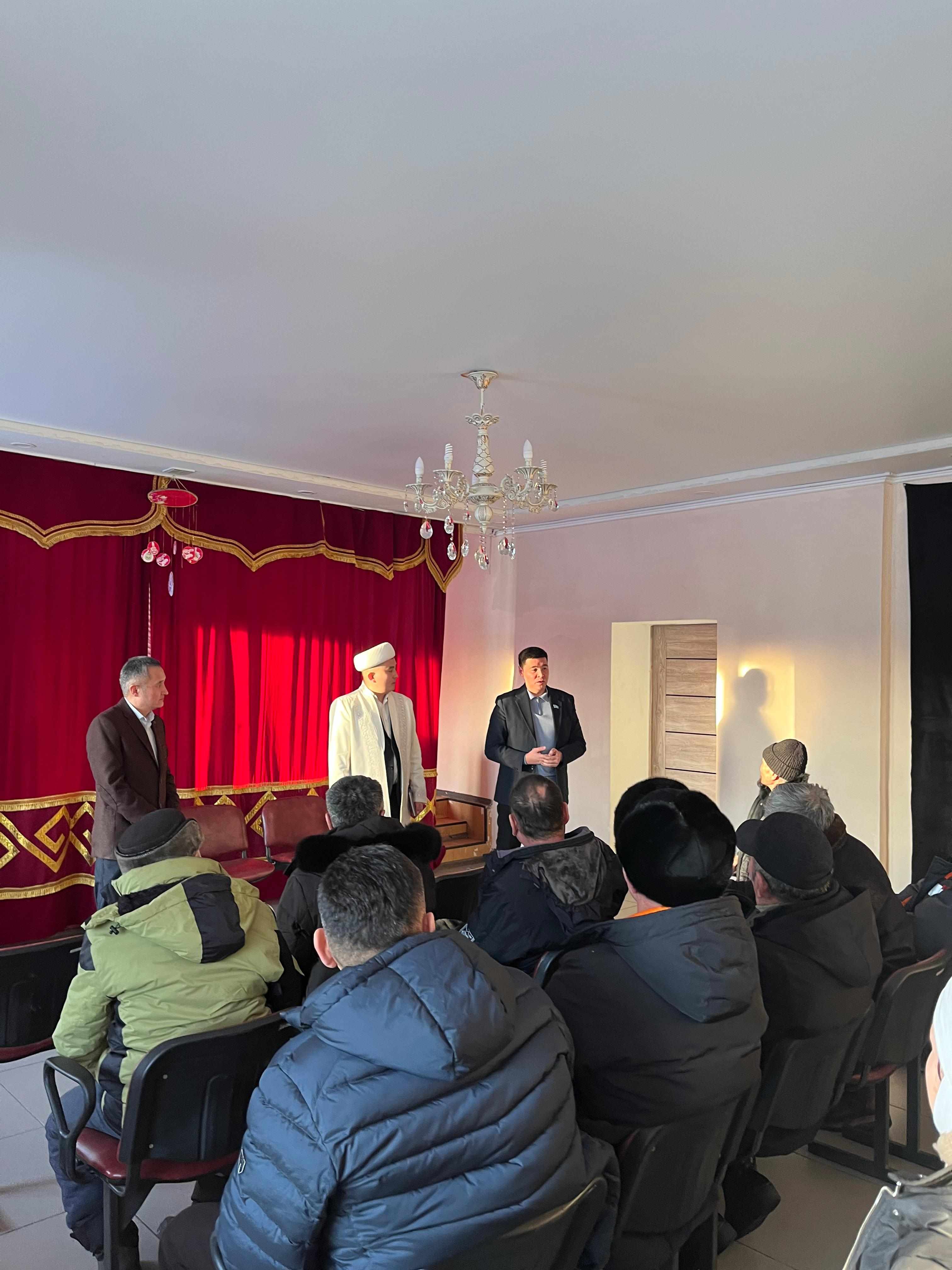 Қарағанды облысы, Бұқар жырау ауданы Байқадам ауылдық «Ғыйзат қажы» мешітінің имамы Орынбай Ерлан Көкпекті ауылдық округі әкімдігімен бірлесе отырып, жергілікті халықпен кездесуі өткізді.