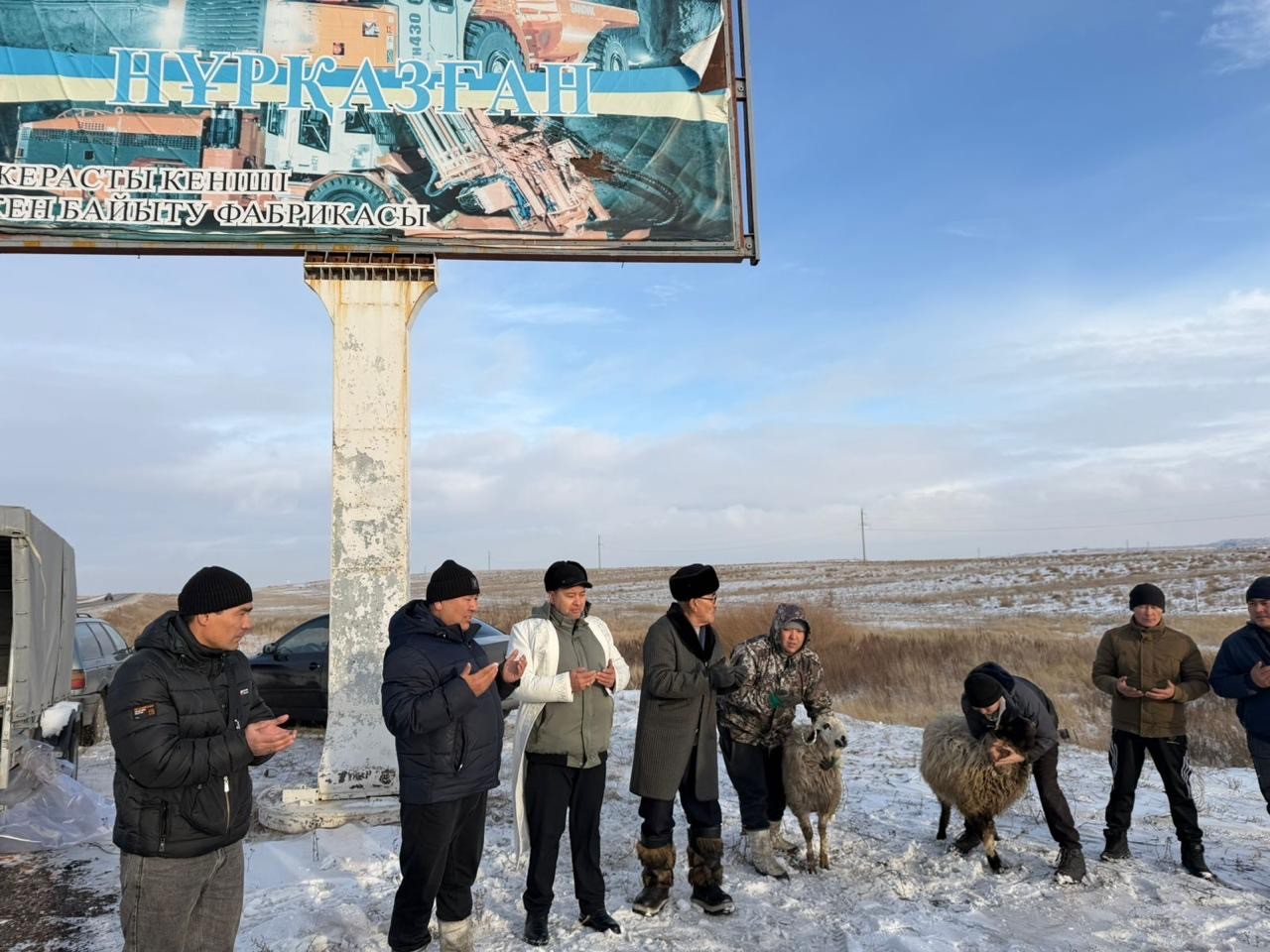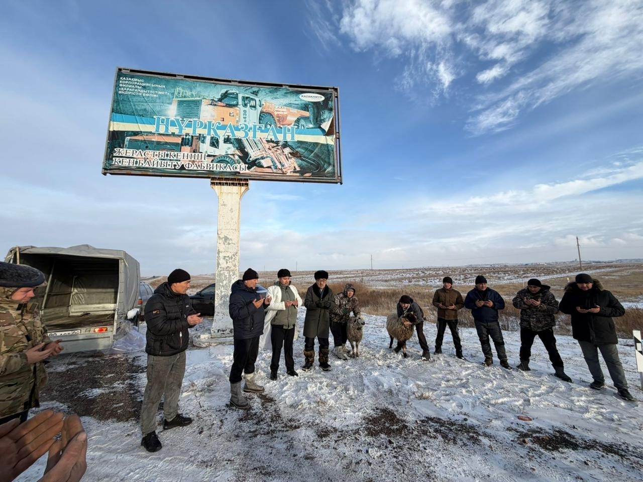 Жол-көлік оқиғаларының алдын алу мақсатында Ақтау–Теміртау автожолы мен Нұрқазған елді мекеніне апаратын жол қиылысында екі бас малды құрбандыққа шалынып, елдің амандығы мен жол қауіпсіздігі үшін арнайы дұға жасалды.