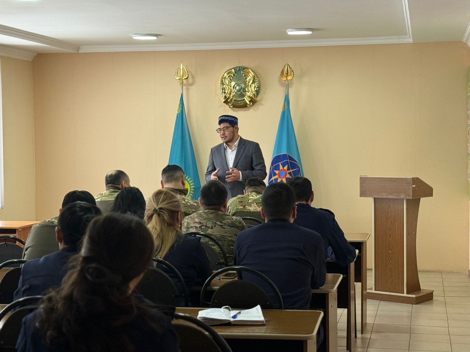 Қарағанды қаласы Төтенше жағдайлар басқармасының қызметкерлері үшін «Радикалды діни ағымдар идеологиясына қарсы іс-қимыл» және «Қазақстан Республикасының мемлекеттік құрылымы мен ұлттық қауіпсіздігіне қатер төндіретін идеологиялар» тақырыптарында дәріс ұйымдастырылды.