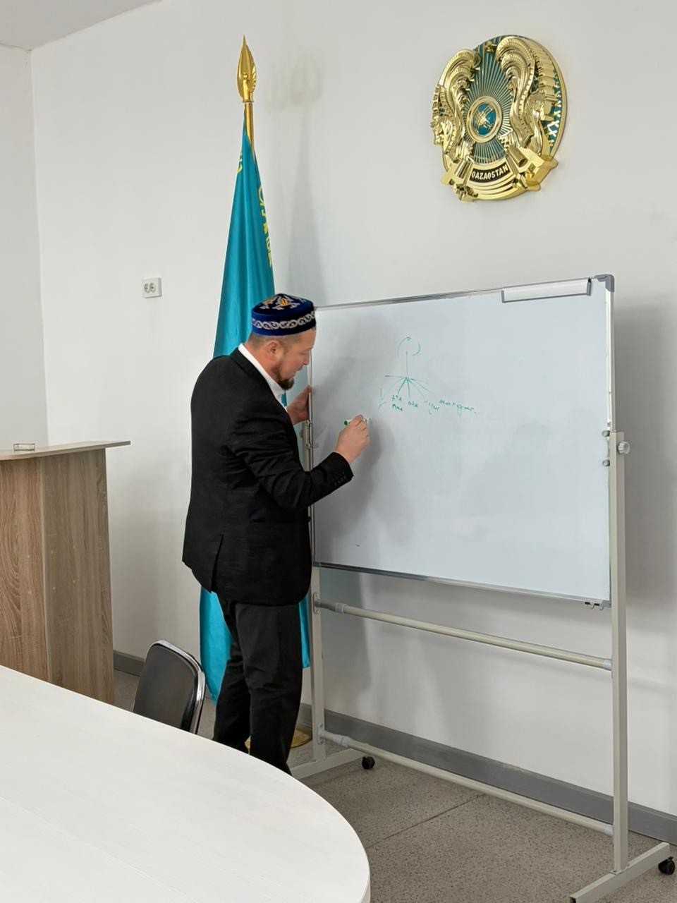 Қарағанды қалалық «Төлеутай ата» мешітінің имамы Рауан Төлеубекұлы «Діни оңалту және жат діни ағымдардан сақтандыру» бағыты бойынша Приозерск қаласының мемлекеттік мекеме қызметкерлеріне арнайы түсіндіру жұмысын өткізді.