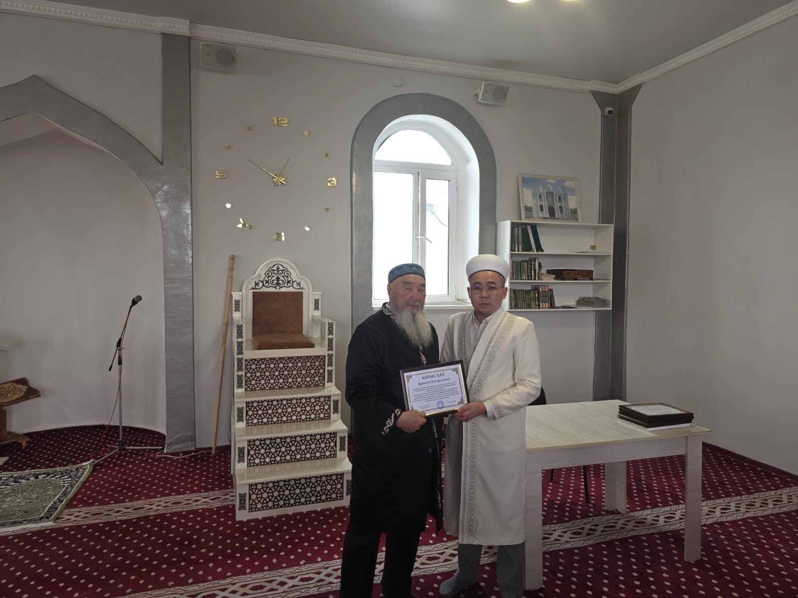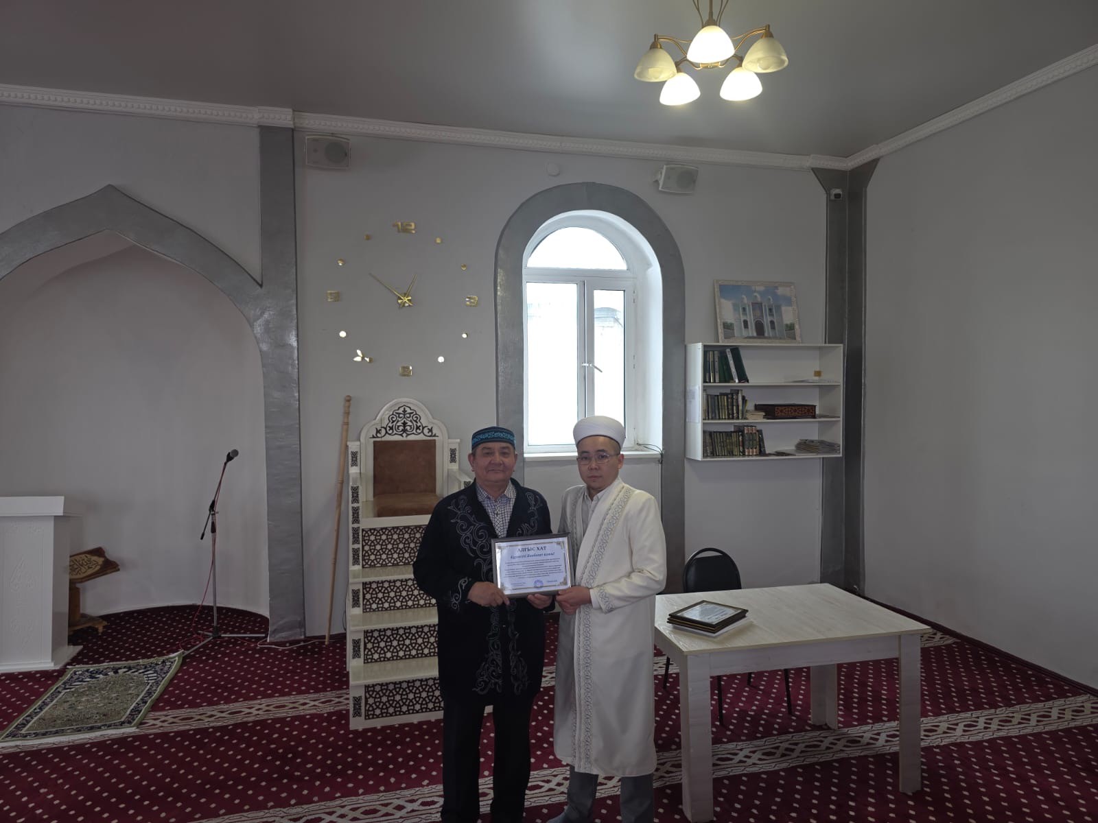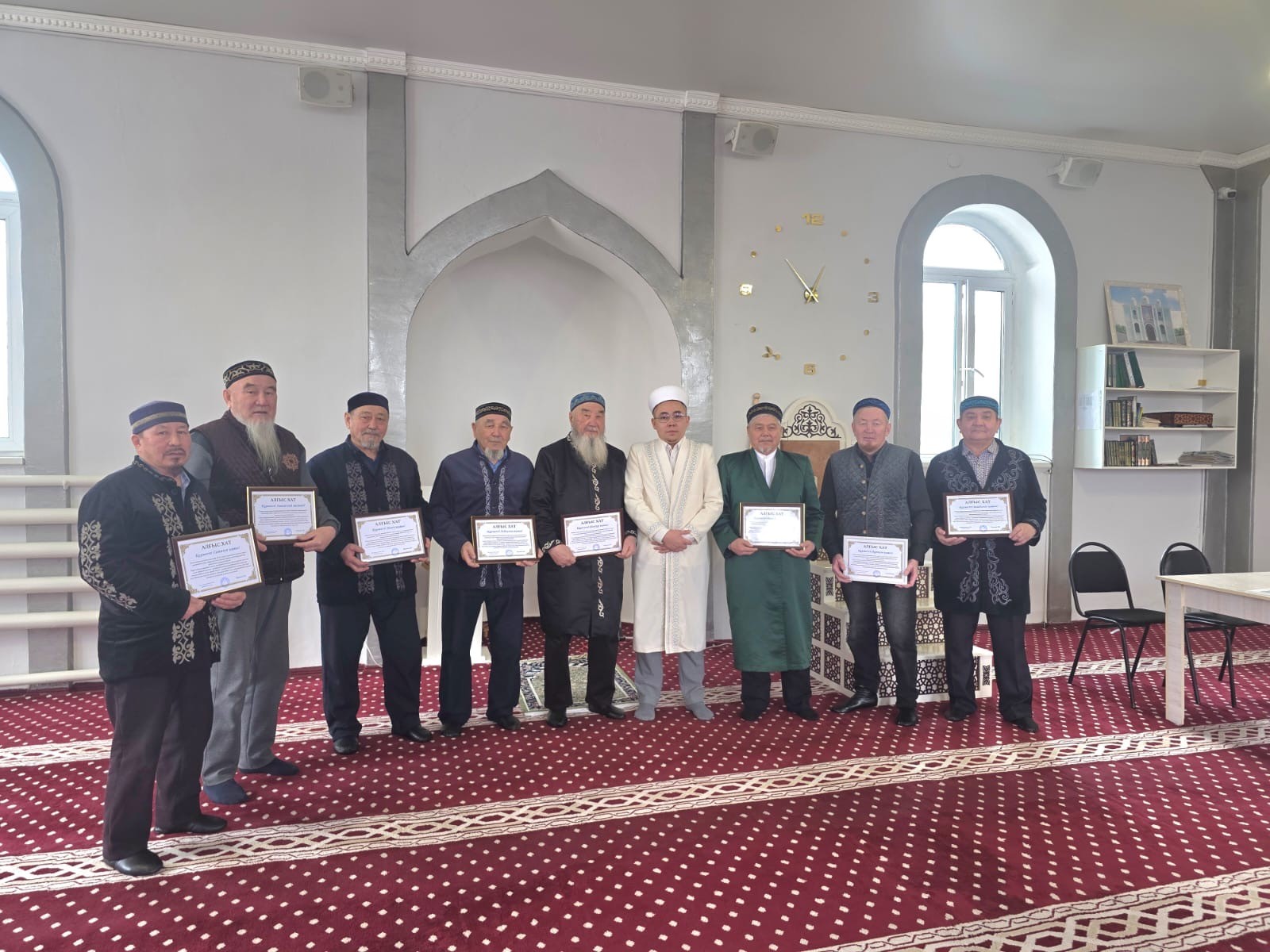 Имам жыл бойы мешіт қызметіне адал еңбек еткен барша ұжымға алғысын білдіріп, әр қызметкердің үлесі сауапты іс екендігін жеткізді. Жиын барысында мешіт ақсақалдарына және тұрақты қызмет атқарып жүрген имамдарға алғыс хаттар табысталды. Бұл — мешіт өміріне белсене араласып, ел бірлігі мен рухани тұрақтылыққа үлес қосып жүрген жандарға көрсетілген құрметтің белгісі.