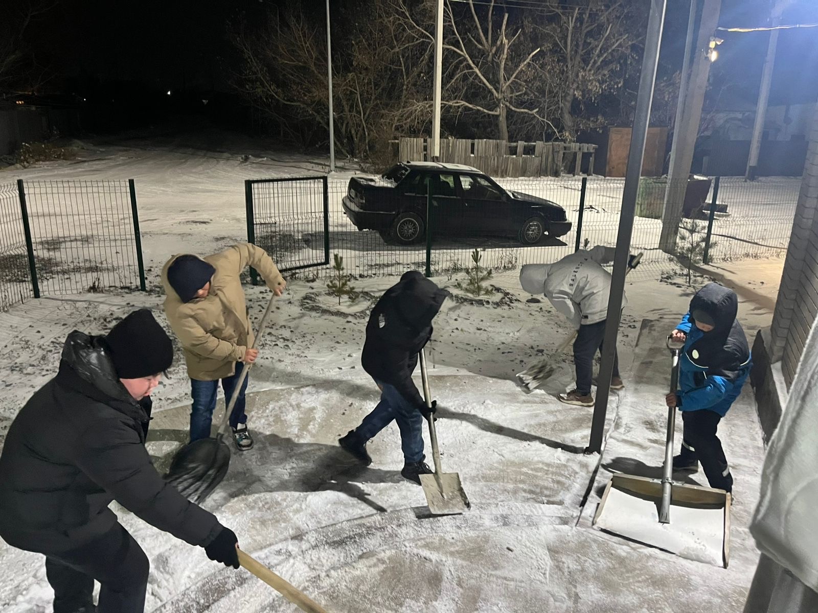 Ақтас кенті «Ерімбет ата» мешітінің шәкірттері мен мешіт жанашырлары бірлесе отырып, мешіт ауласын қардан тазарту жұмыстарын жүргізді.