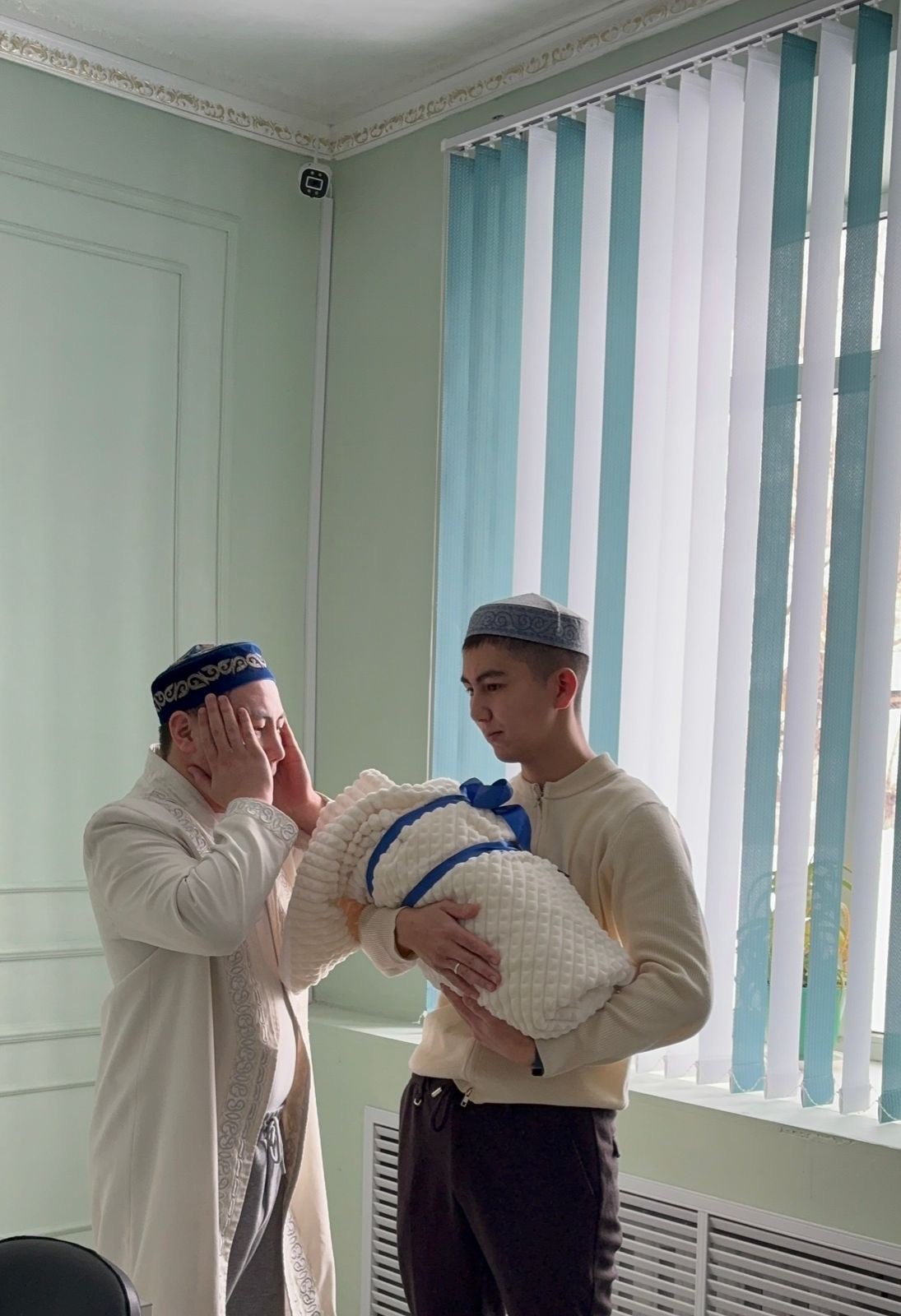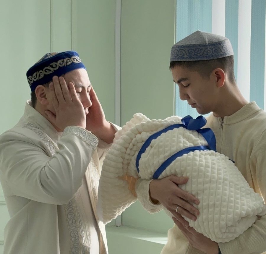 Шара барысында мешіттің наиб имамы Ерболат Дауржан шариғат талаптарына сай сәбидің құлағына азан шақырып, есім қойды. Сондай ақ, дұға жасап, сәбиге ізгі тілек білдірілді.