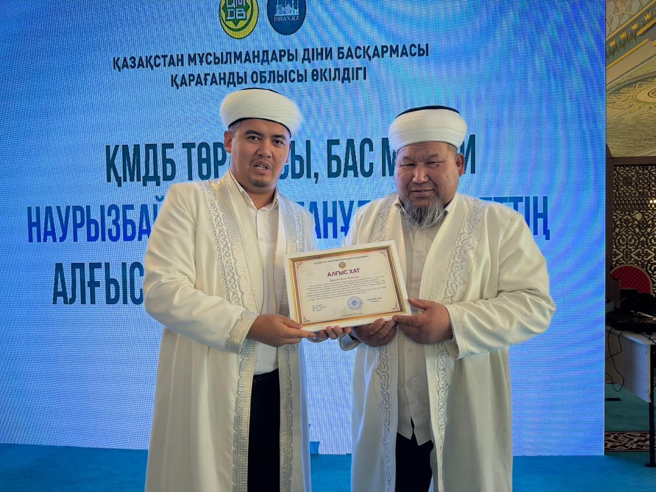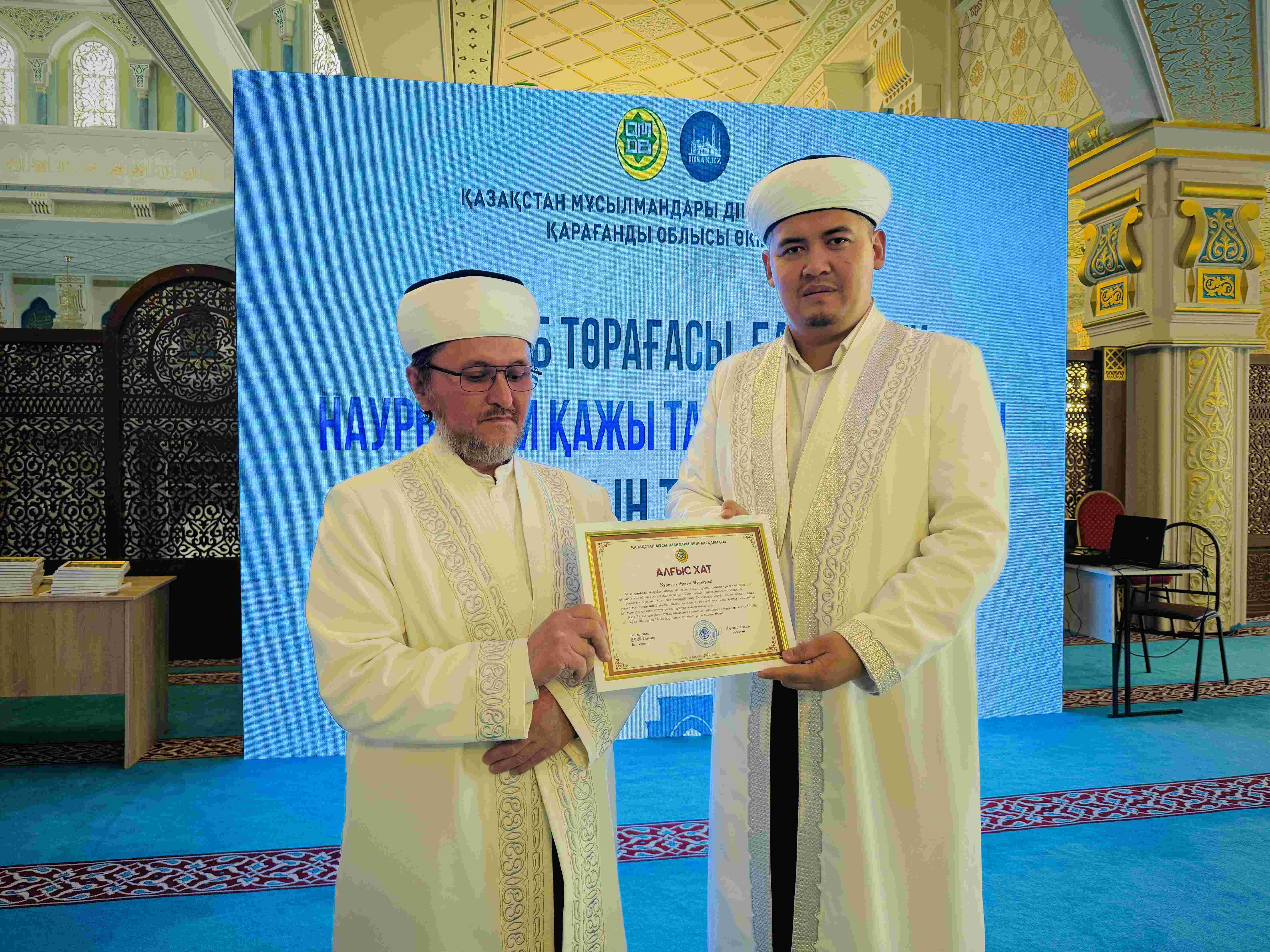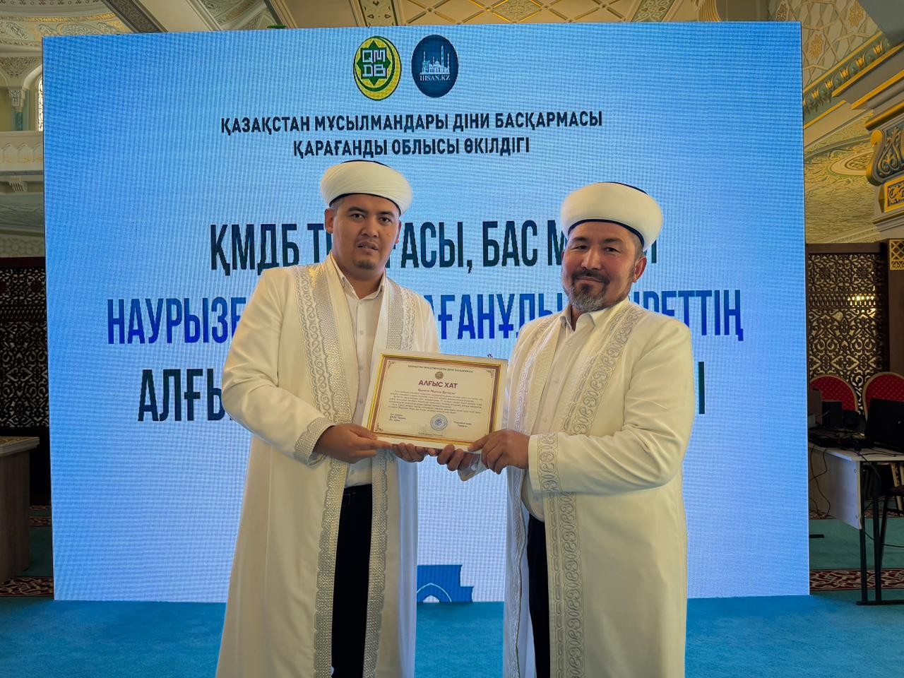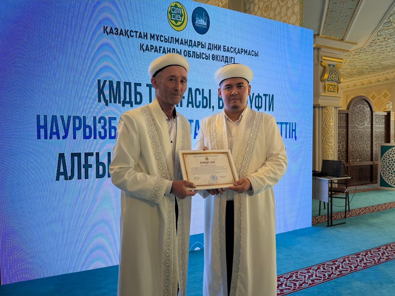 Жиын соңында Қарағанды облысында ұзақ жылдар бойы асыл дініміздің құндылығы үшін қызмет атқарған бірқатар дін қызметкерлері діни басқарманың 35 жылдық мерейтойына орай ҚМДБ Төрағасы, Бас мүфти Наурызбай қажы Тағанұлының арнайы алғыс хатымен марапатталды.
