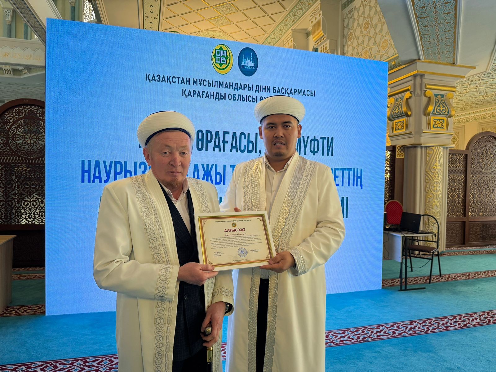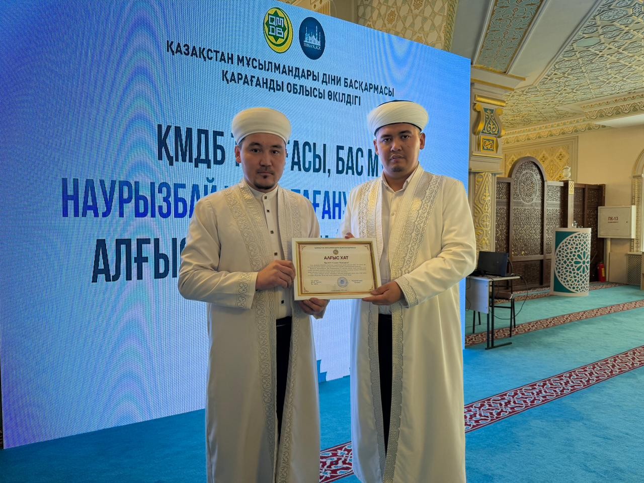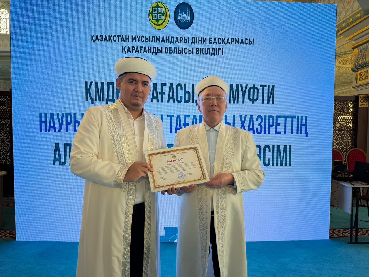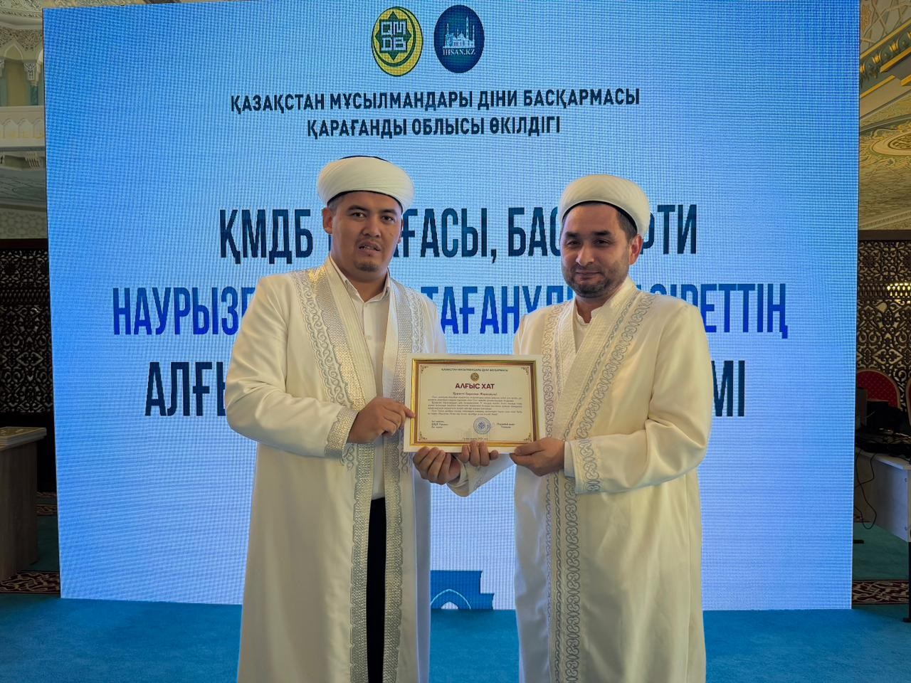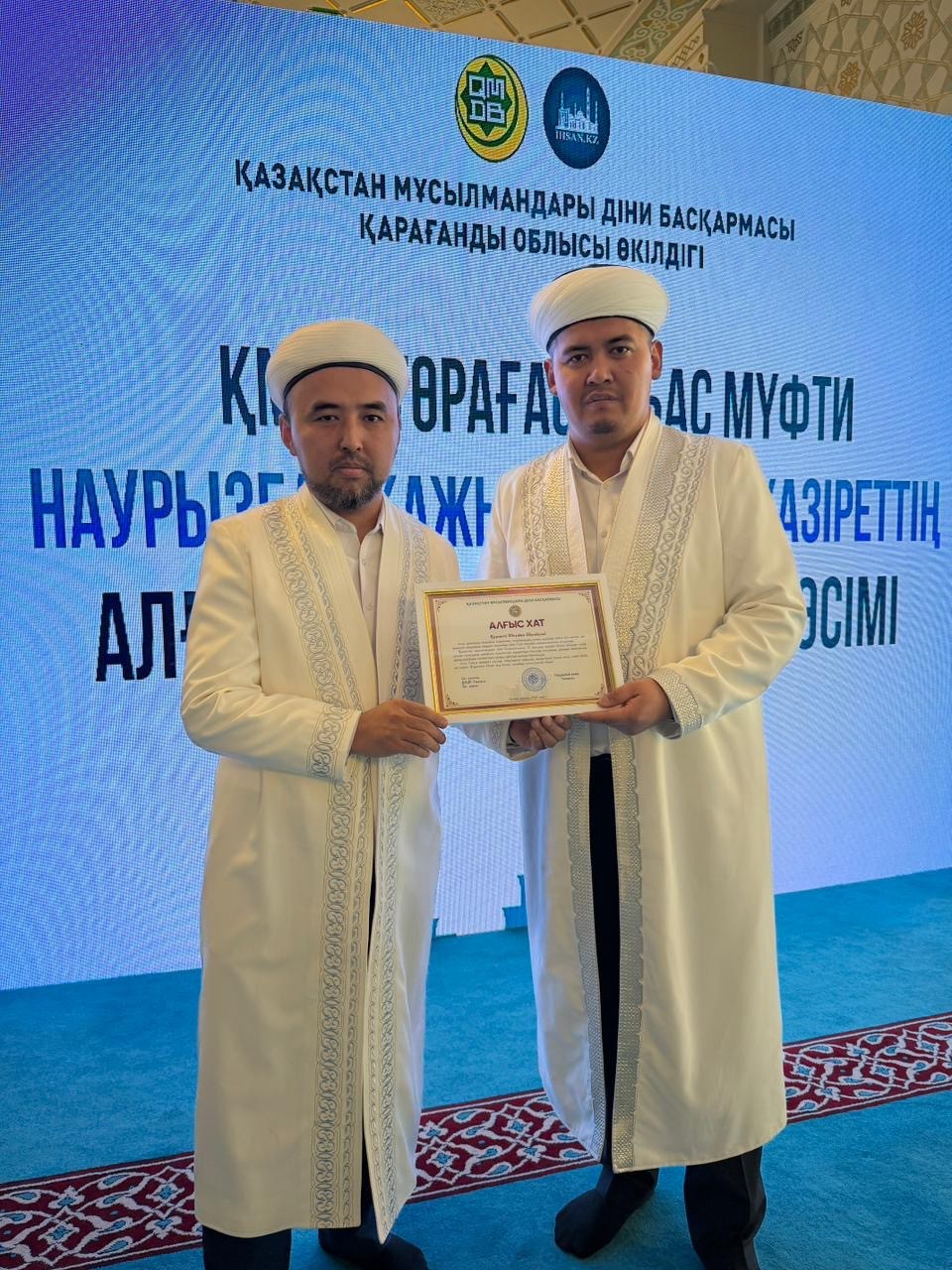 Жиын соңында Қарағанды облысында ұзақ жылдар бойы асыл дініміздің құндылығы үшін қызмет атқарған бірқатар дін қызметкерлері діни басқарманың 35 жылдық мерейтойына орай ҚМДБ Төрағасы, Бас мүфти Наурызбай қажы Тағанұлының арнайы алғыс хатымен марапатталды.