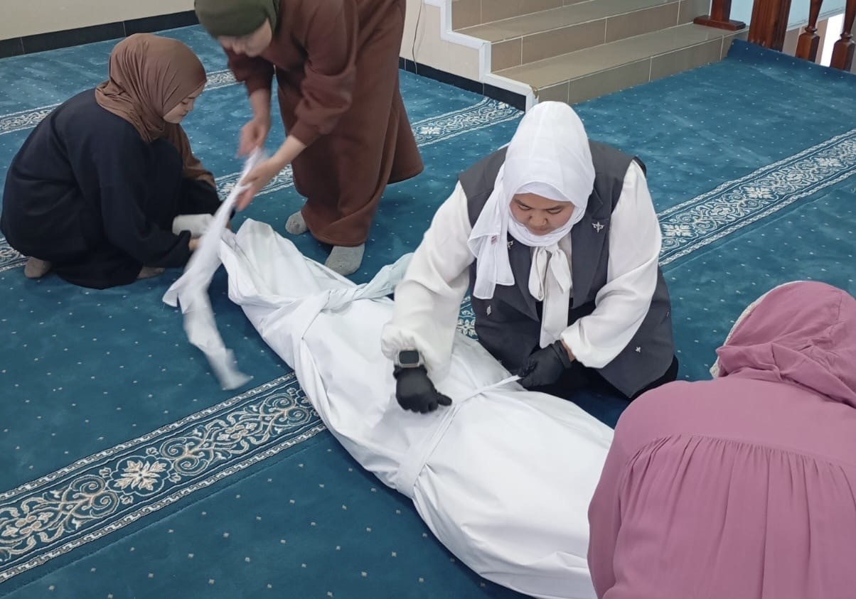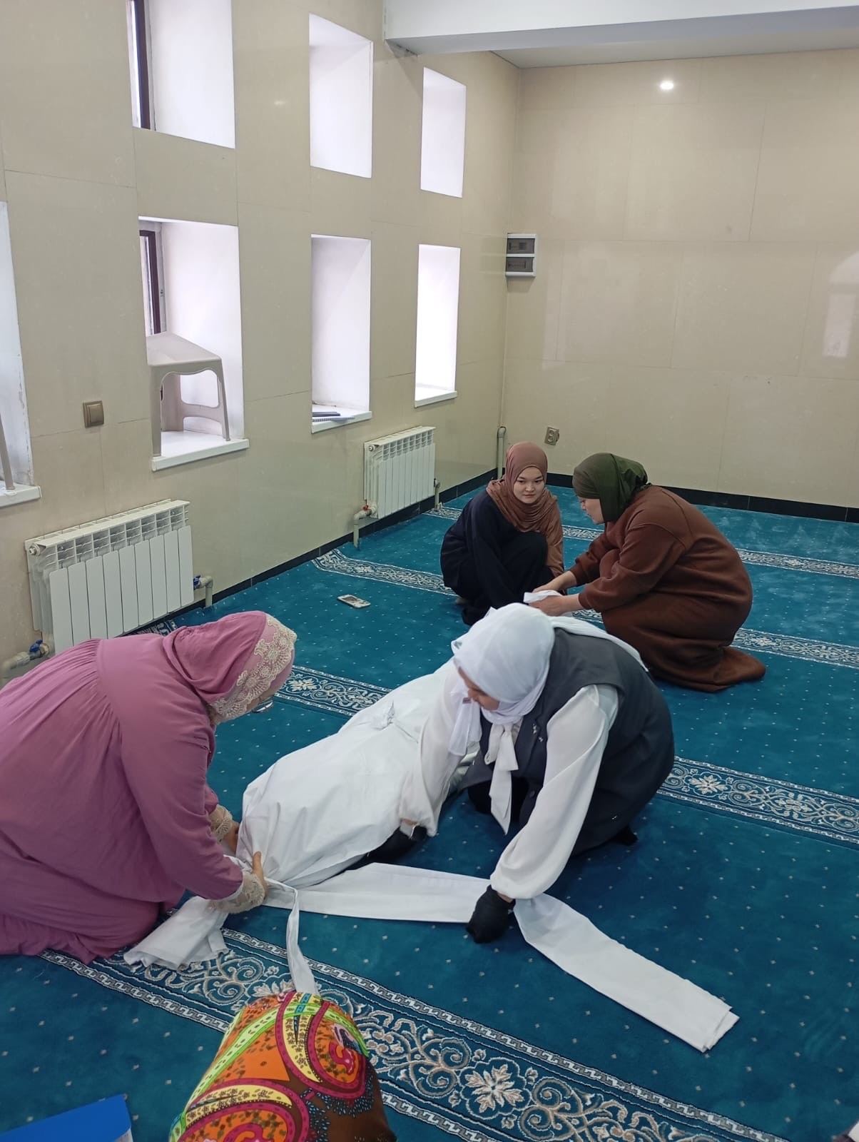 Теміртау орталық «Әлихан Бөкейхан» мешітінің ұстазы Муслима Абдрайымқызы шәкірттерге мәйітті жуындыру және кебіндеу рәсімімен таныстыру-үйрету дәрістерін өткізді.