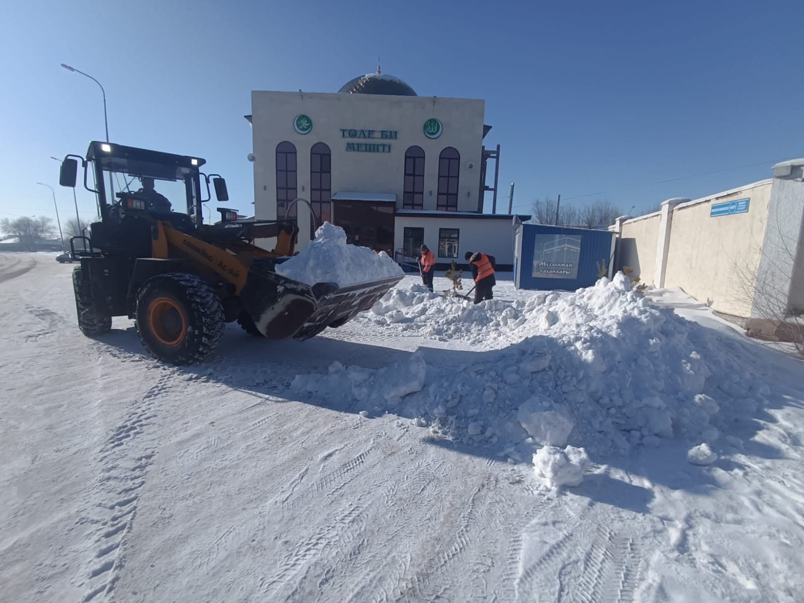 Іс-шара барысында мешіт жамағаты мен қызметкерлер бірлесе атсалысып, ауладағы қарды тазалап, мешіт маңын ретке келтірді.