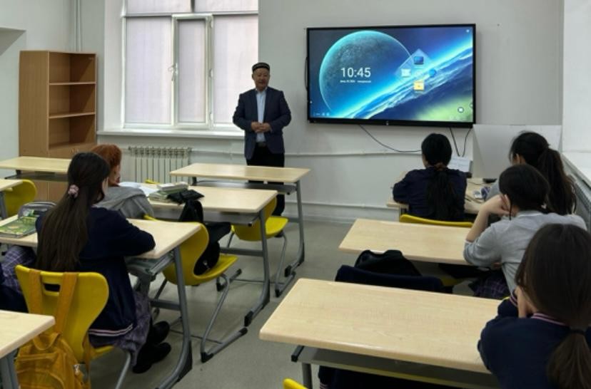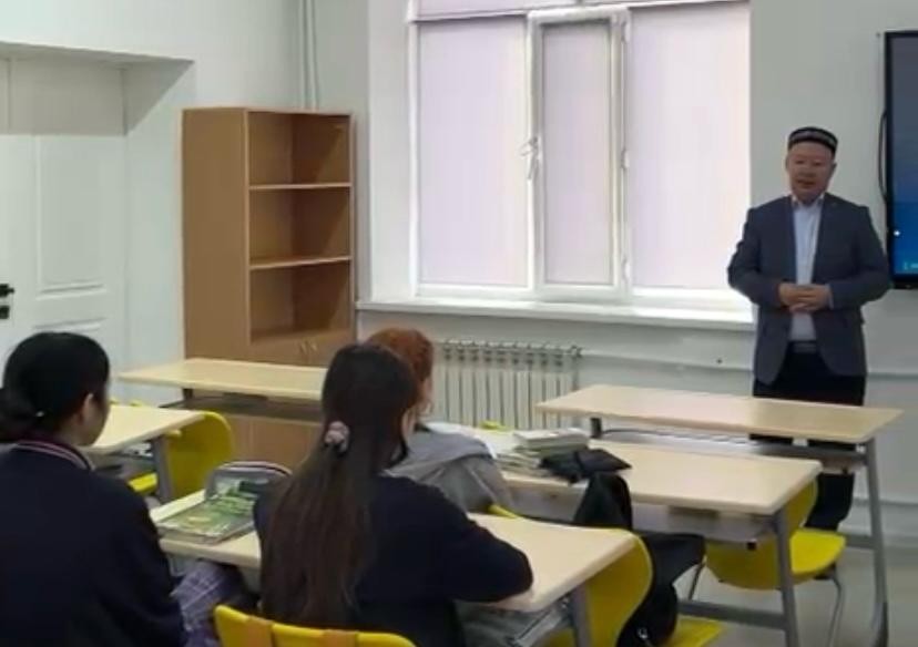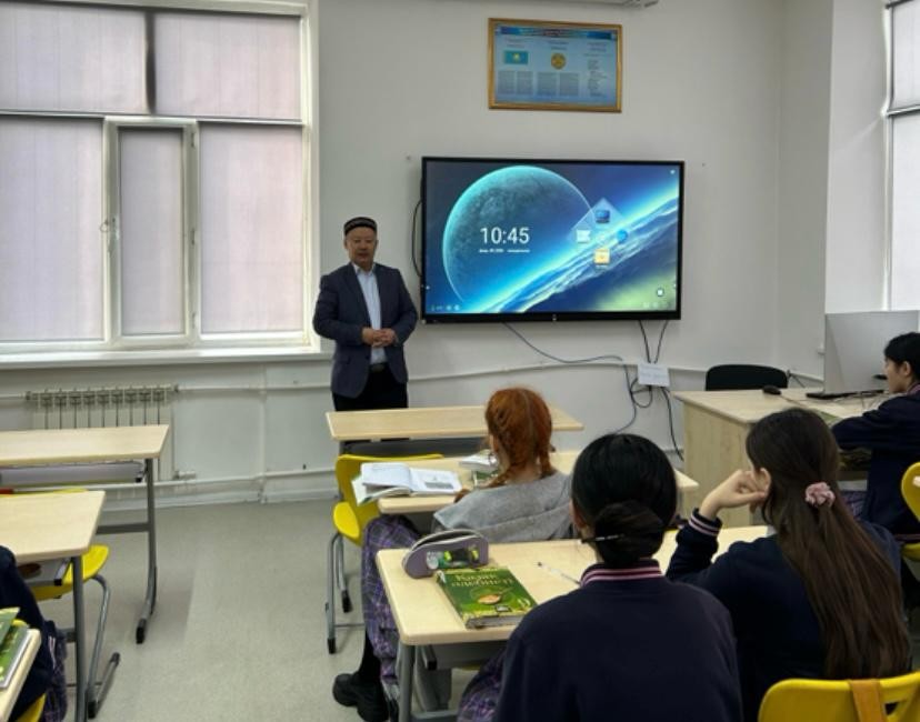 Қарағанды қалалық №2 Білім-инновация лицейінде тәрбие сағаты өтті. Лицей әкімшілігінің ұйымдастыруымен өткен іс-шараға Қарағанды қалалық «Бұқар жырау» мешітінің наиб имамы Аманбол Рымқұлұлы қатысты.