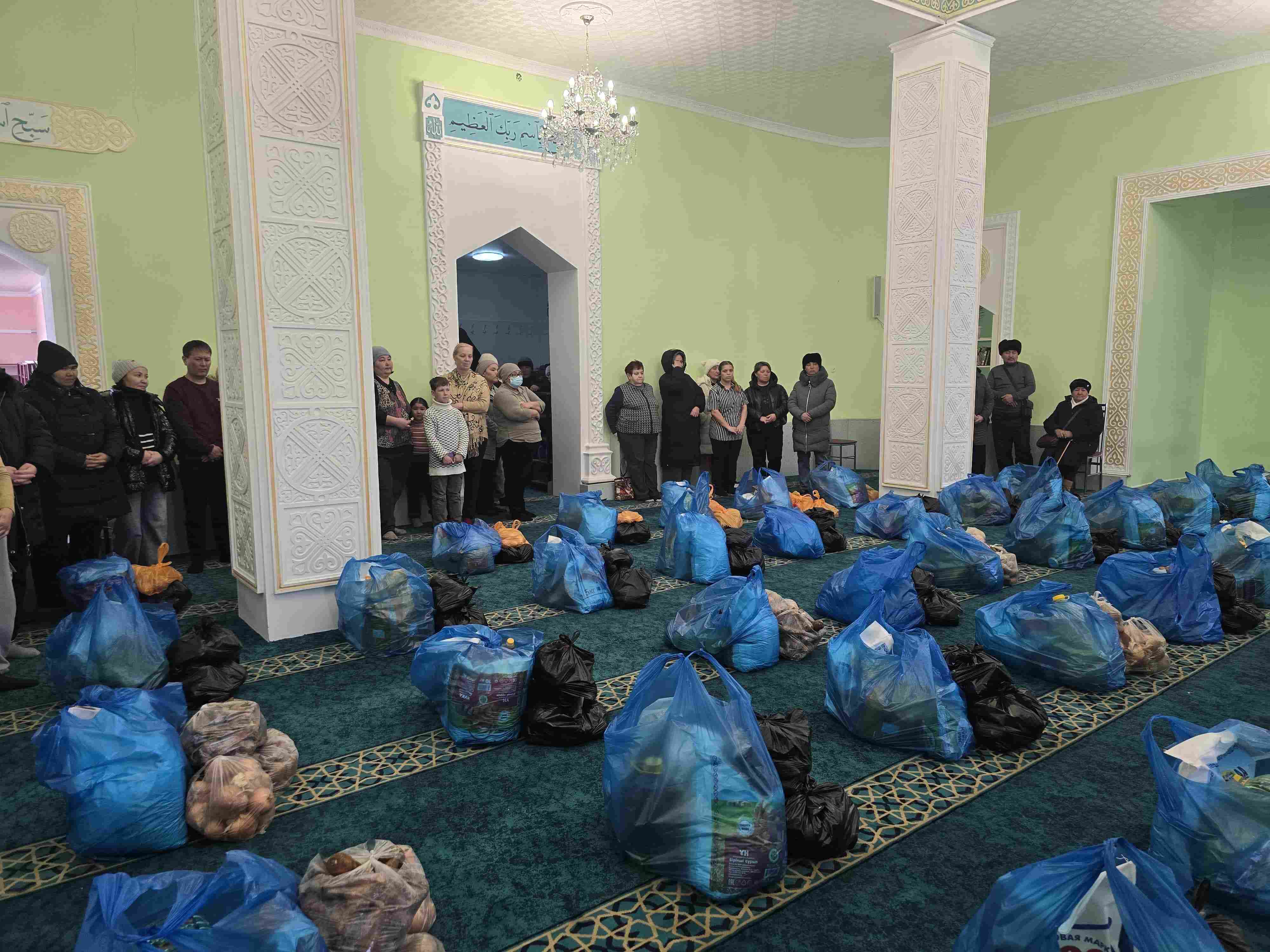 Іс-шара барысында мешіт имамы Нұрболат Қалдарбекұлының мұрындық болуымен мұқтаж отбасыларға азық-түлік себеттері үлестіріліп, қатысушыларға қайырымдылық пен зекеттің маңыздылығы түсіндірілді.