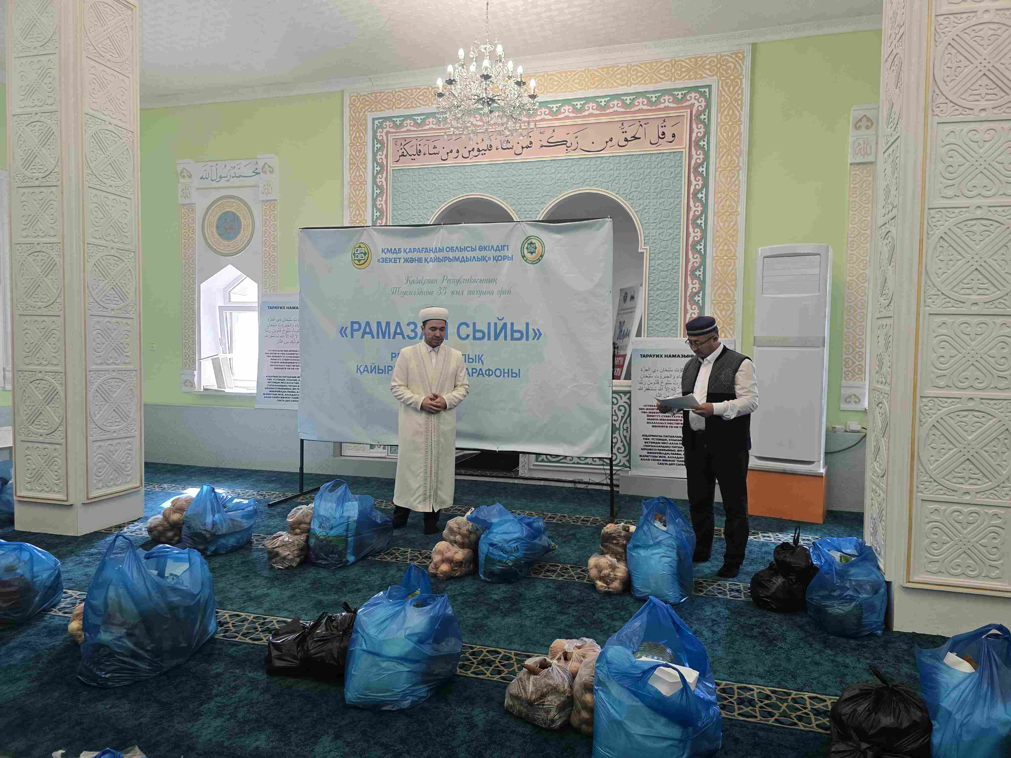 Қасиетті Рамазан айының алғашқы 10 күнінде Балқаш қалалық мешіті «Зекет және қайырымдылық» қорының ұйымдастыруымен «Рамазан сыйы» қайырымдылық акциясы аясында 100 отбасына азық-түлік таратылды.