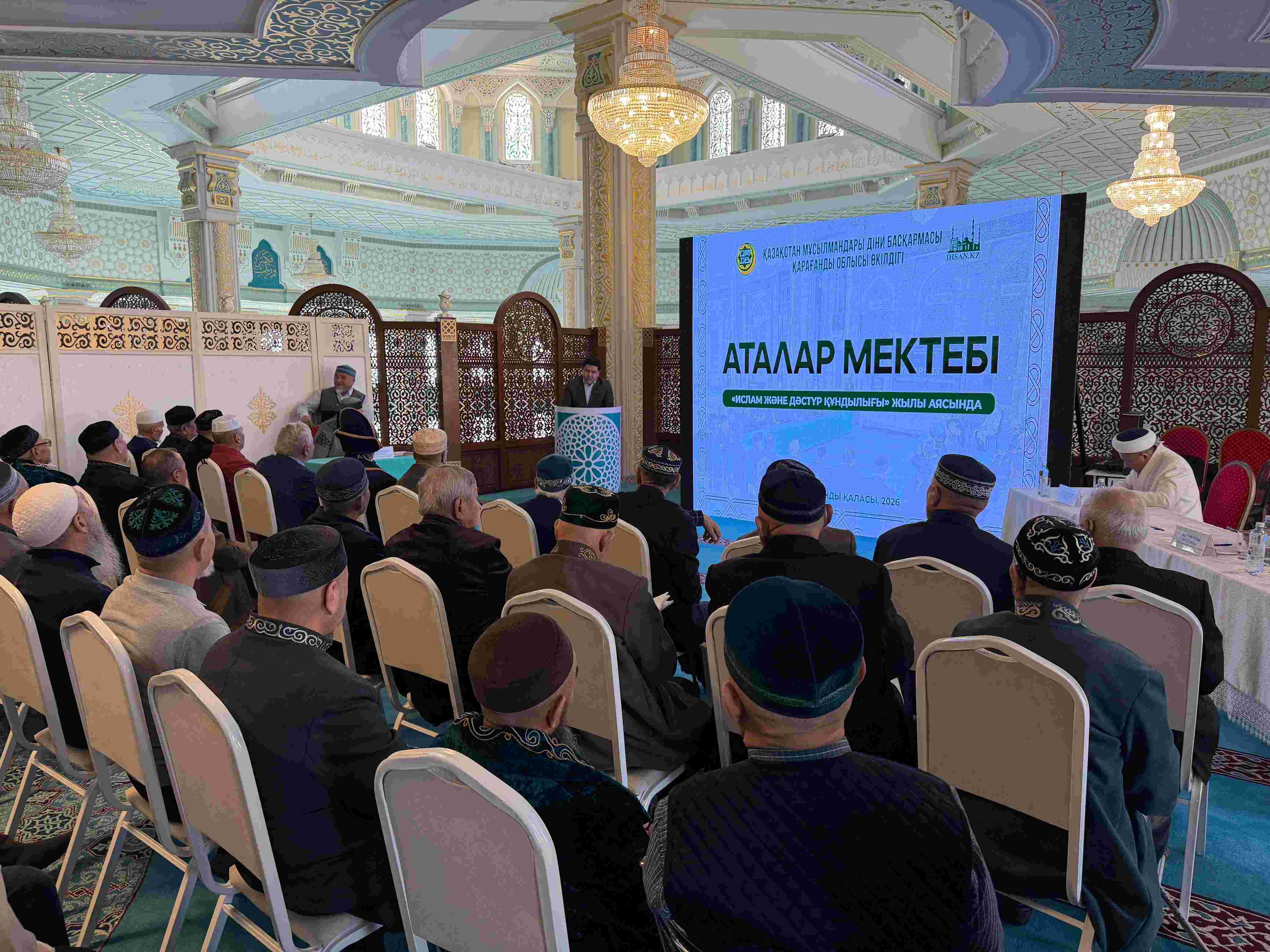 «Ислам және адал қоғам» жылы аясында ҚМДБ Төрағасы, Бас мүфти Наурызбай қажы Тағанұлының бастамасымен Қарағанды облыстық «Әнет баба» мешітінде бұқара халыққа және жастарға ақыл-кеңес айтатын «Аталар мектебінің» кезекті семинары өтті.