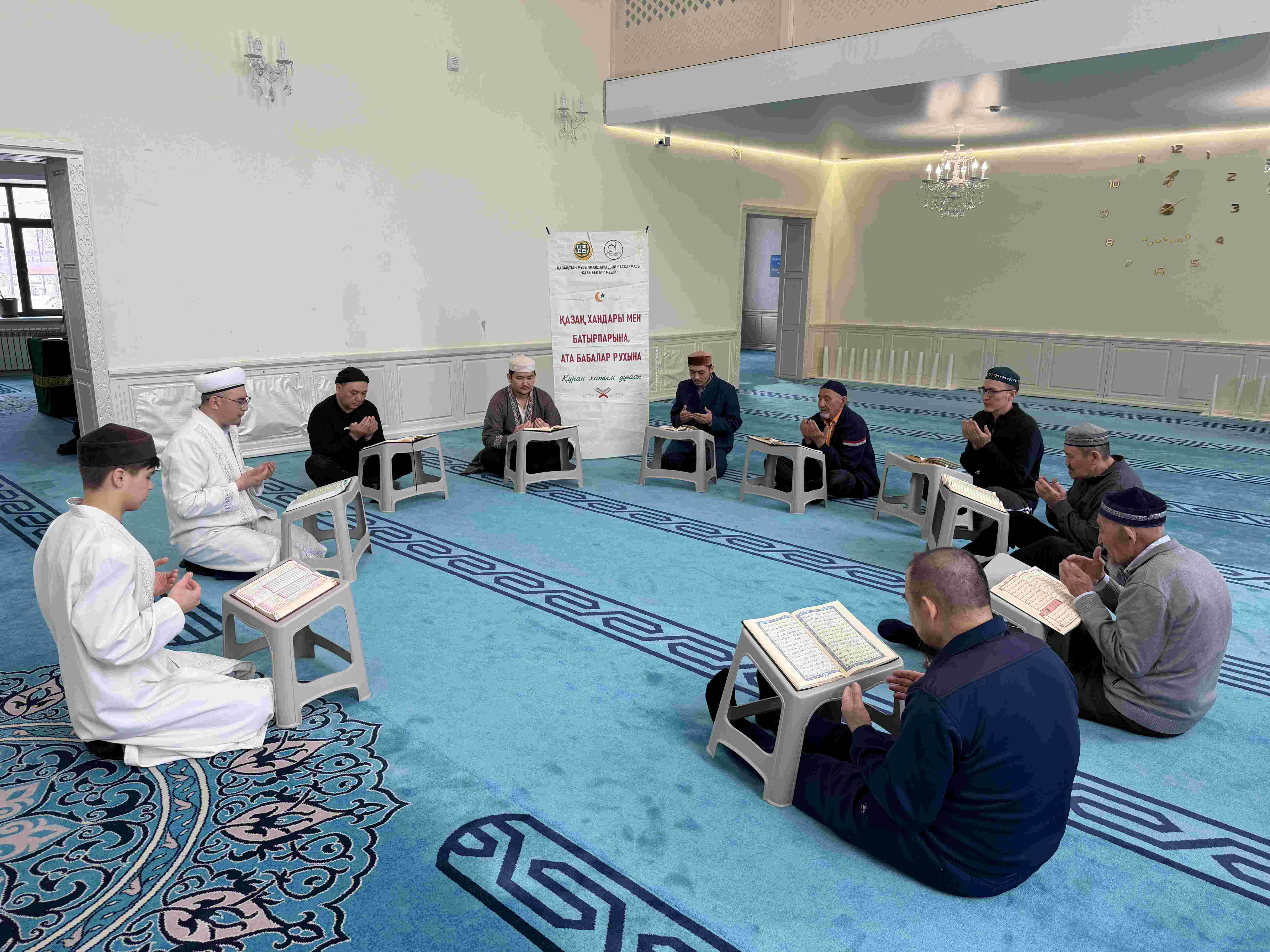 Рамазан айының жоспарына сәйкес Қарағанды қалалық «Қазыбек би» мешітінде ер азаматтарға арналған Құран хатым тұрақты түрде ұйымдастырылып келеді.