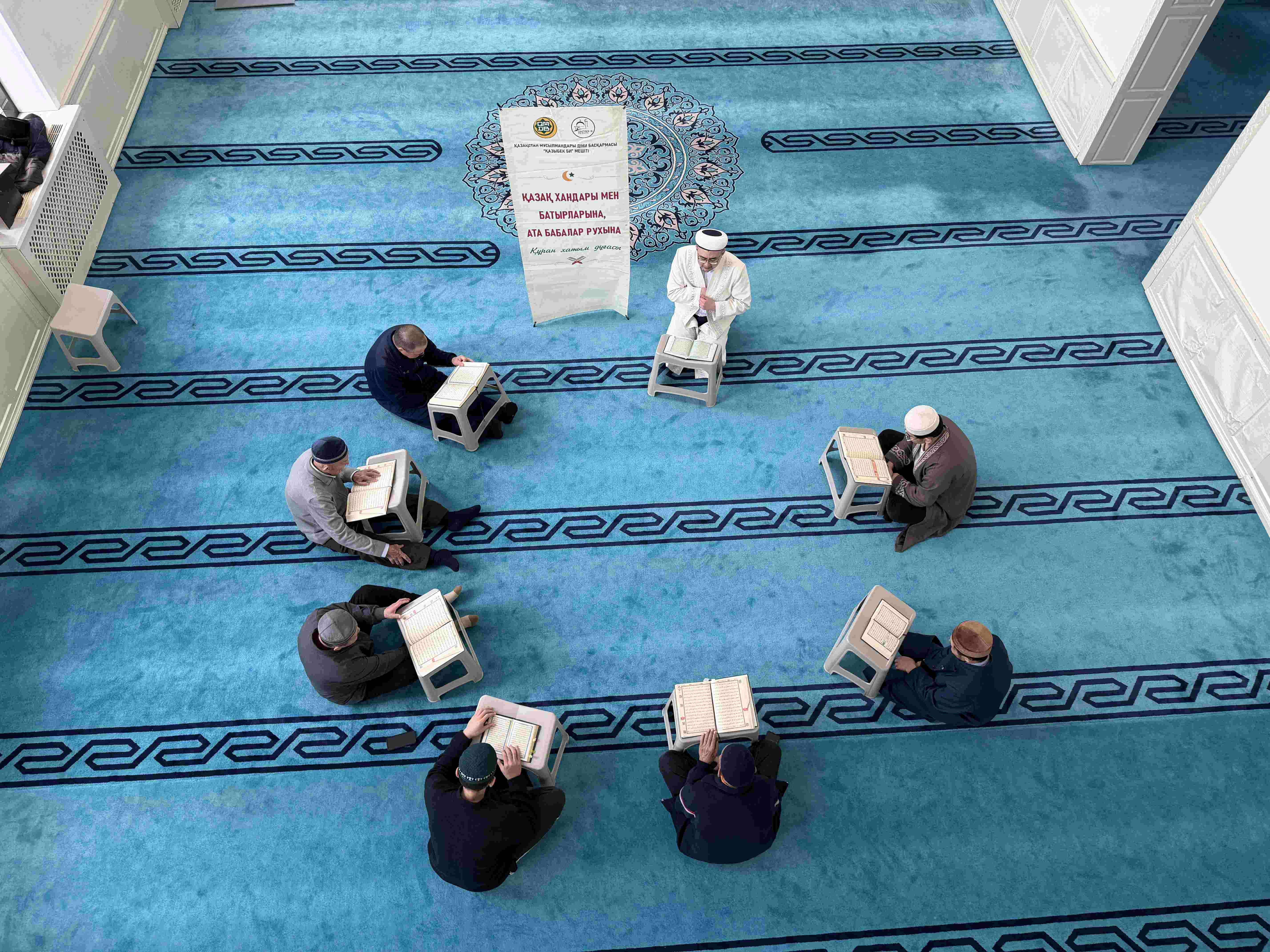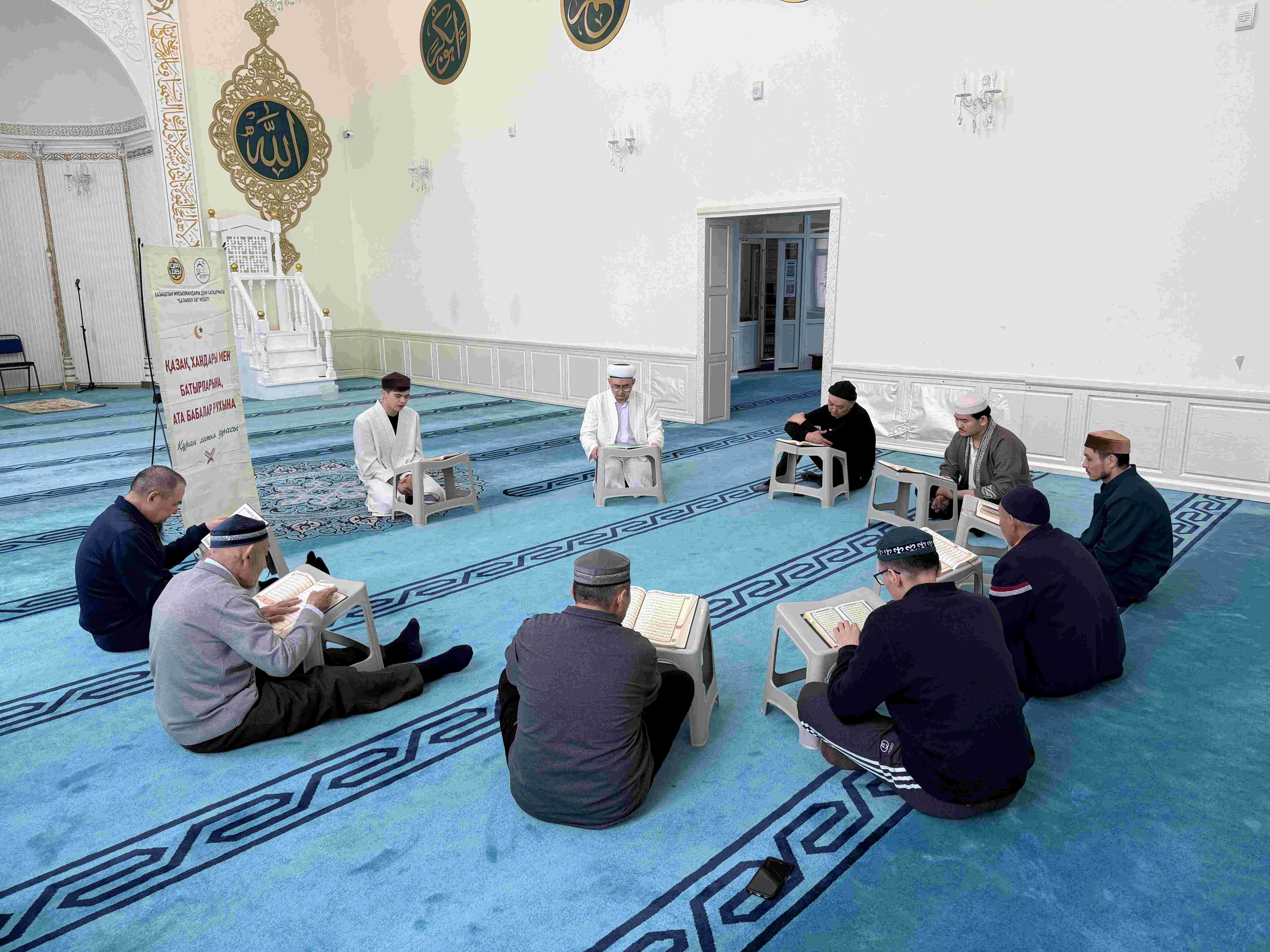 Әр күні бесін намазынан кейін өткізілетін хатым Құранды қари Амангелді Алан Арманұлы жүргізуде. Жамағат Құран аяттарын тыңдап, бірге оқып, рухани тағылым алуда.