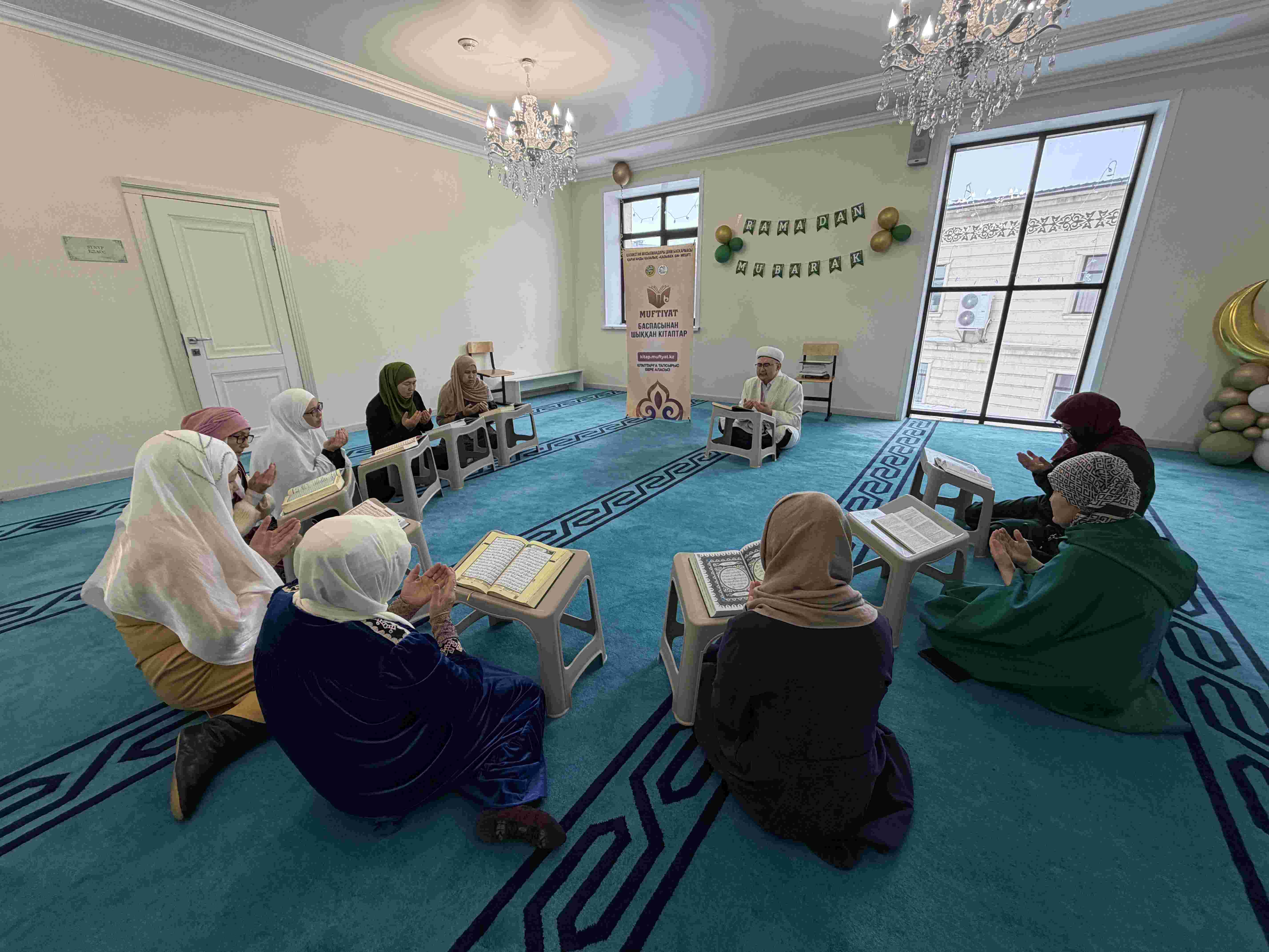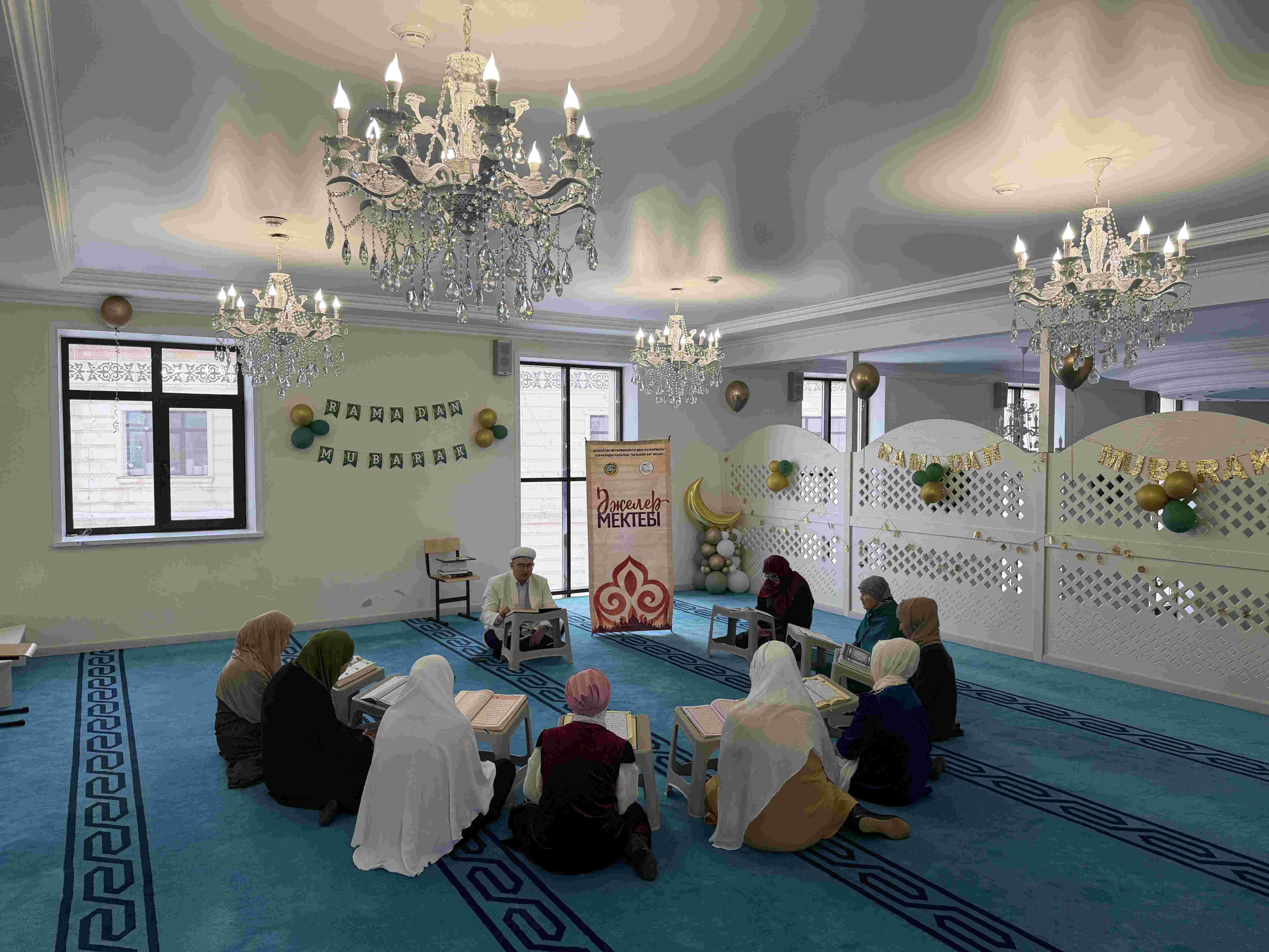 Рамазан айы бойы мешіт ұстазы Жадыра Асылтайқызының жетекшілігімен әйелдер жамағаты тұрақты түрде жиналып, қасиетті Құран Кәрімді оқып, толық хатым жасады. Рухани шара барысында жамағат Құран оқудың сауабы мен маңызы туралы насихат тыңдап, қасиетті айдың берекесін бірге бөлісті.