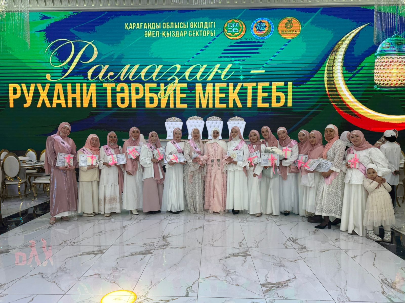 ҚМДБ-ның Қарағанды облыстық «Әнет баба» мешітінің ұстазы Әйгерім Берікболқызының жетекшілігімен «Құранмен нұрланғандар» тобында дәріс алған 25 шәкірт қасиетті Рамазан айында Құранға түсіп, тәж киді.