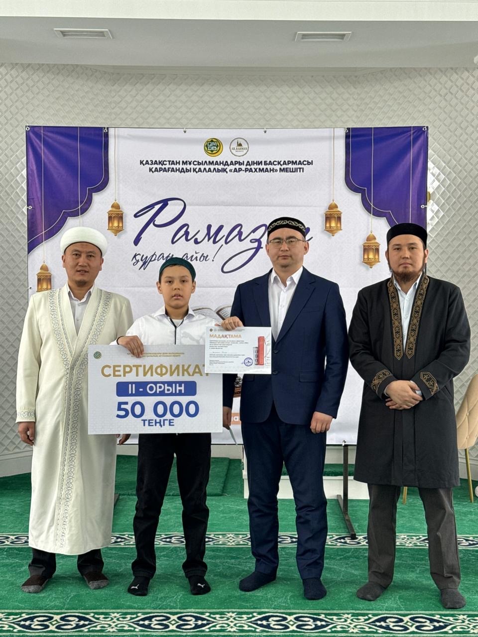 Қарағанды қалалық «Ар-Рахман» мешітінде қасиетті Рамазан айының құрметіне орай «Рамазан – Құран айы» тақырыбында шәкірттер арасында Құран оқу жарысы ұйымдастырылды.