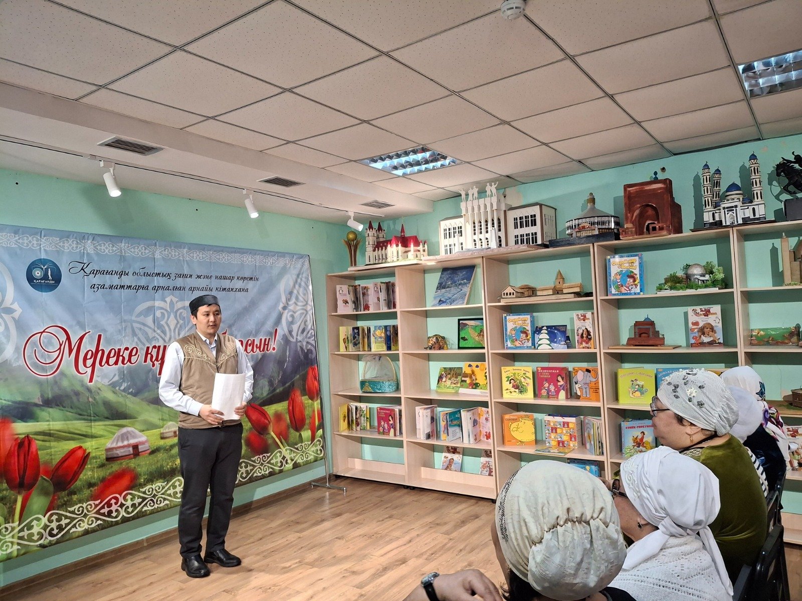 Қарағанды қалалық Төлеутай ата мешіті наиб имамы Дархан Түменбай Қарағанды облыстық зағип және нашар көретін азаматтарға арналған арнайы кітапханада насихат айтты.