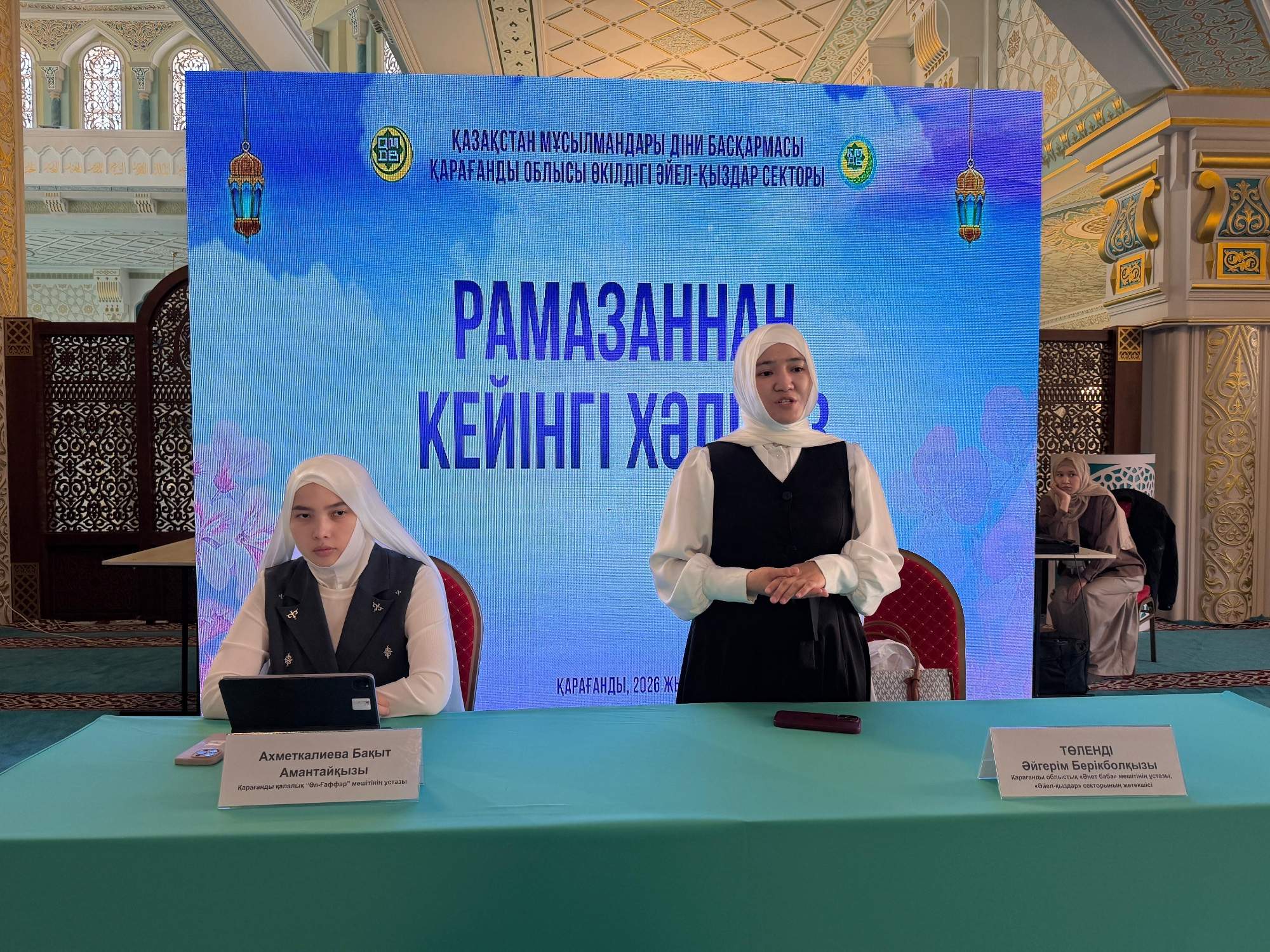 Аталған іс-шараны сектордың облыс бойынша жауапты меңгерушісі Әйгерім Берікболқызы және Қарағанды қалалық «Әл Ғаффар» мешітінің ұстазы Бақыт Амантайқызы жүргізді.