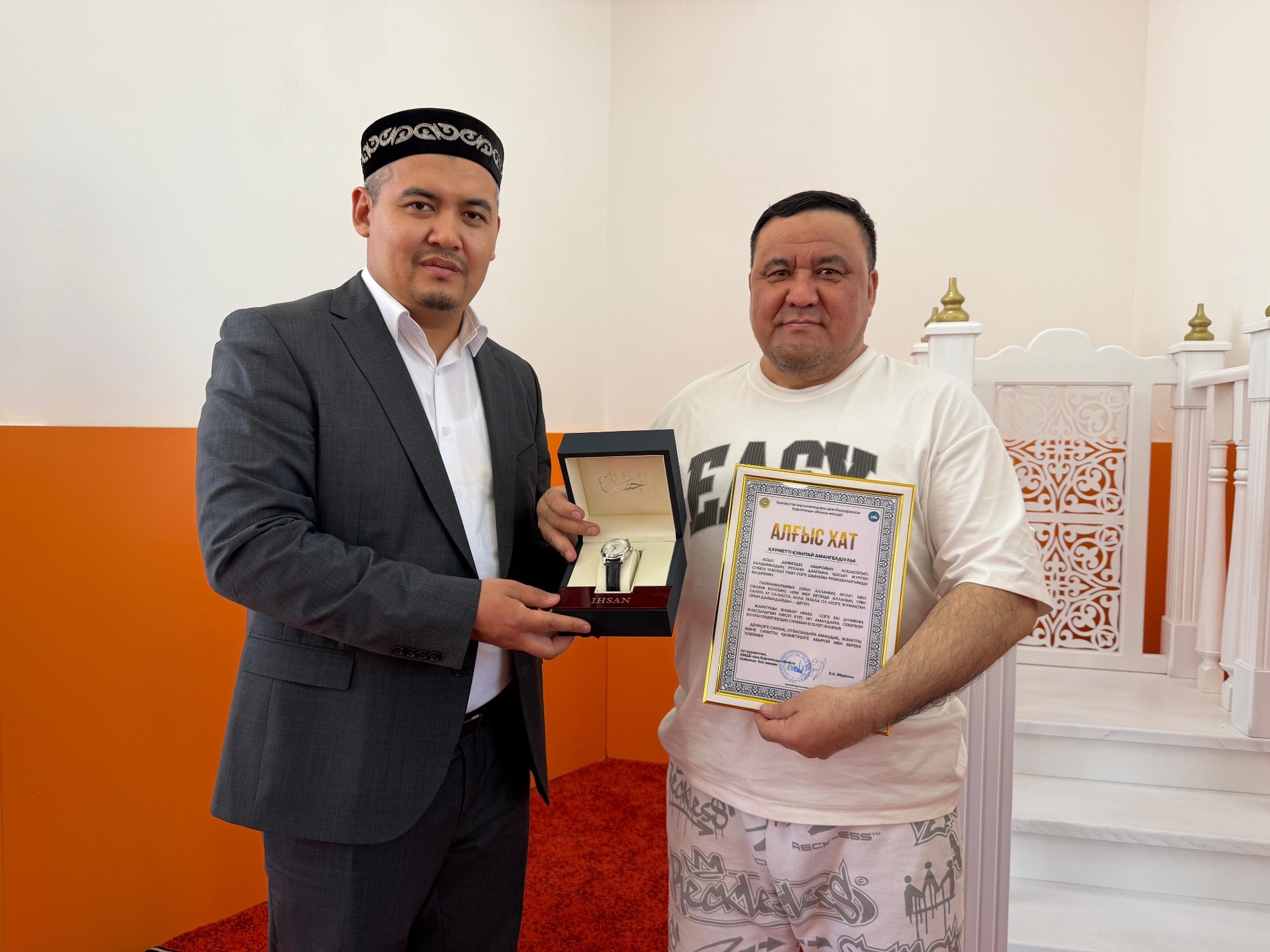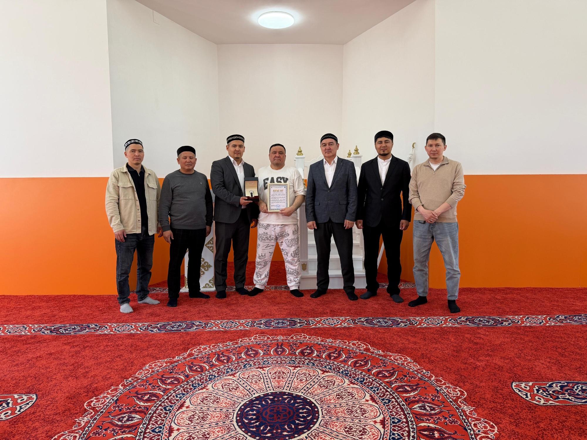 Сондай-ақ, өзіндік бағасын беріп, мешіт құрылысына демеушілік етіп, игі іске мұрындық болған Қуантай Амангелдіұлына арнайы алғыс хатын табыстап, ризашылығын жеткізді.