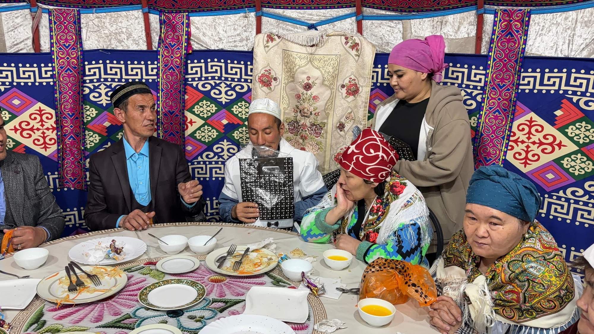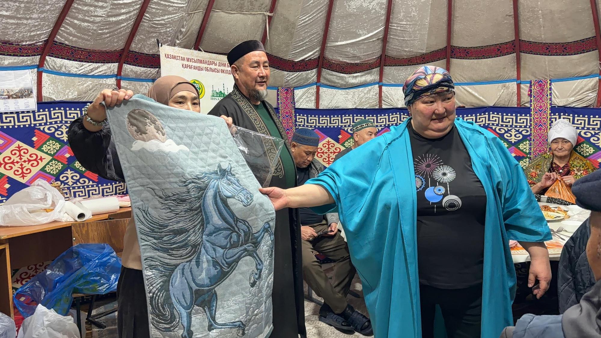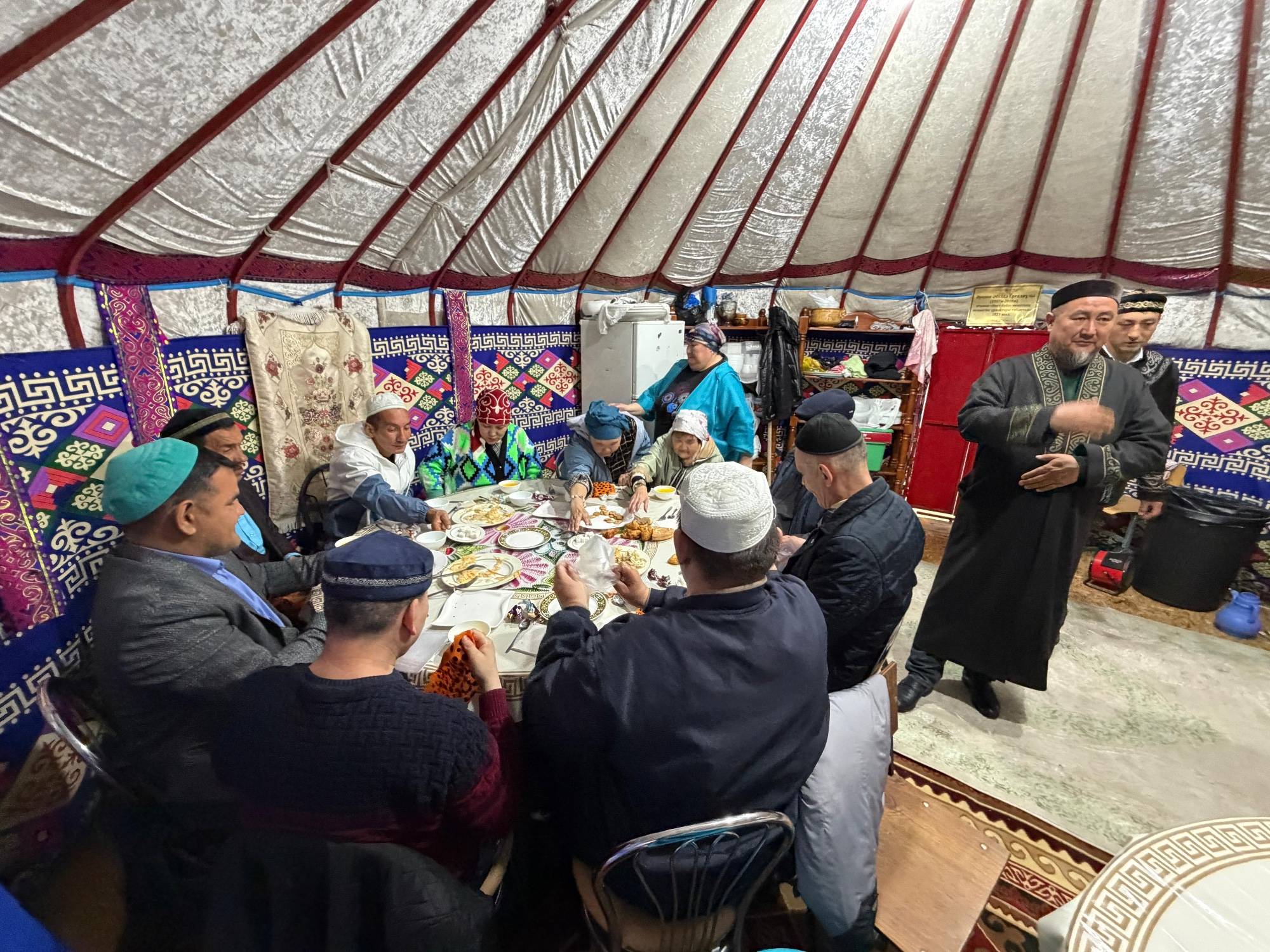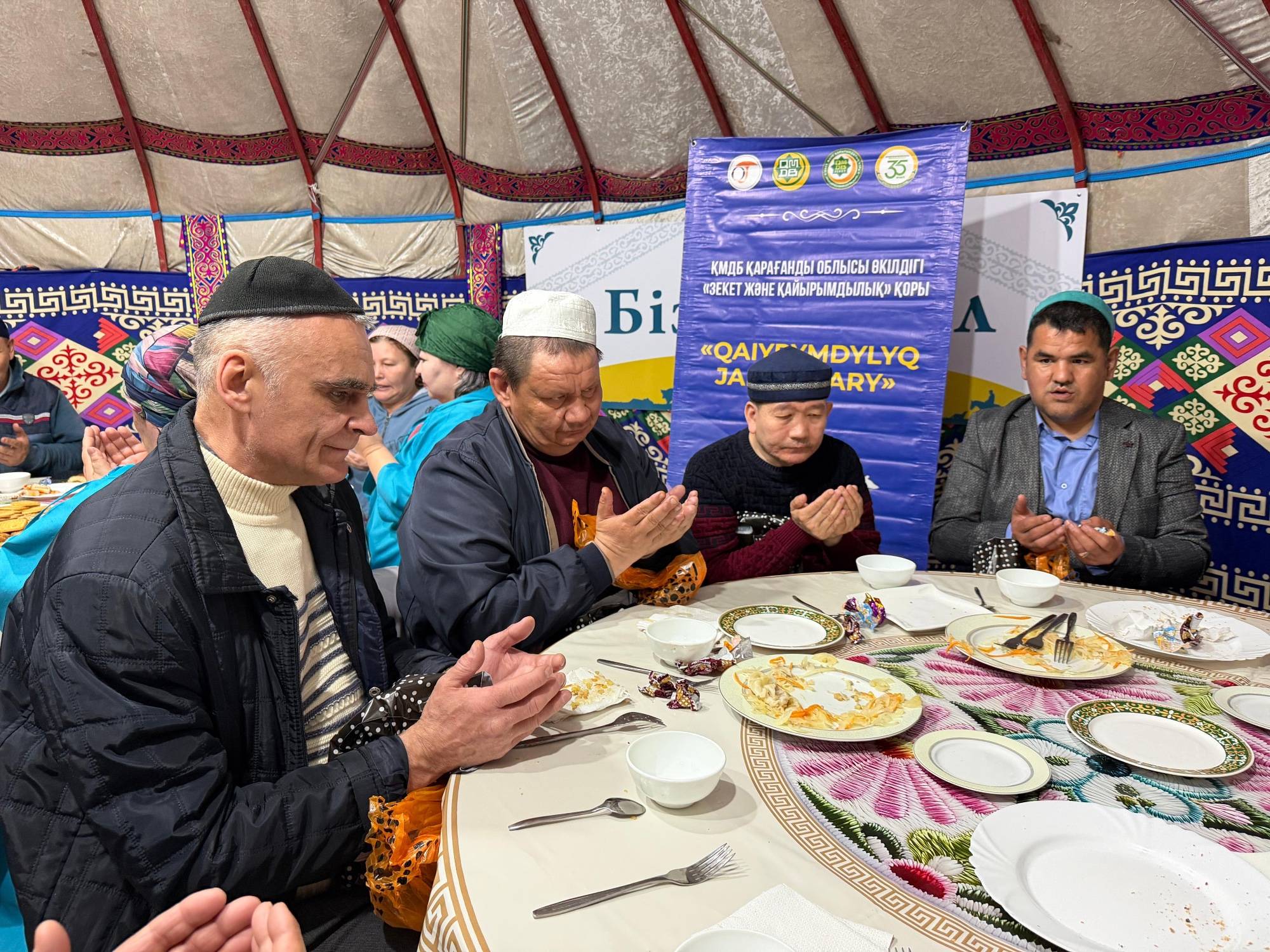 Шара аясында мешіт ауласында тігілген қазақы киіз үйде ақ дастархан жайылып, қарияларға арнайы ас берілді. Ұлттық дәстүрге сай көрсетілген бұл құрмет үлкендердің батасын алуға, олардың көңілін көтеруге бағытталды.