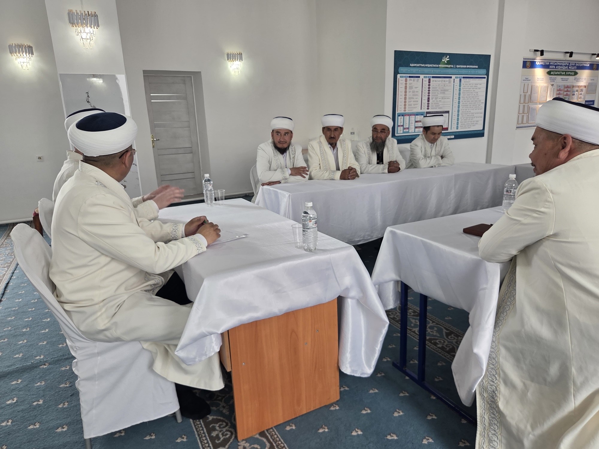 Аудандық мешіт имамы Ерлан Серікұлы облыстан келген наиб имамға өңірдің бүгінгі тынысынан хабар берді. Күн тәртібінде алдымен ауданға қарасты мешіт дін қызметкерлерімен жиын өтті.