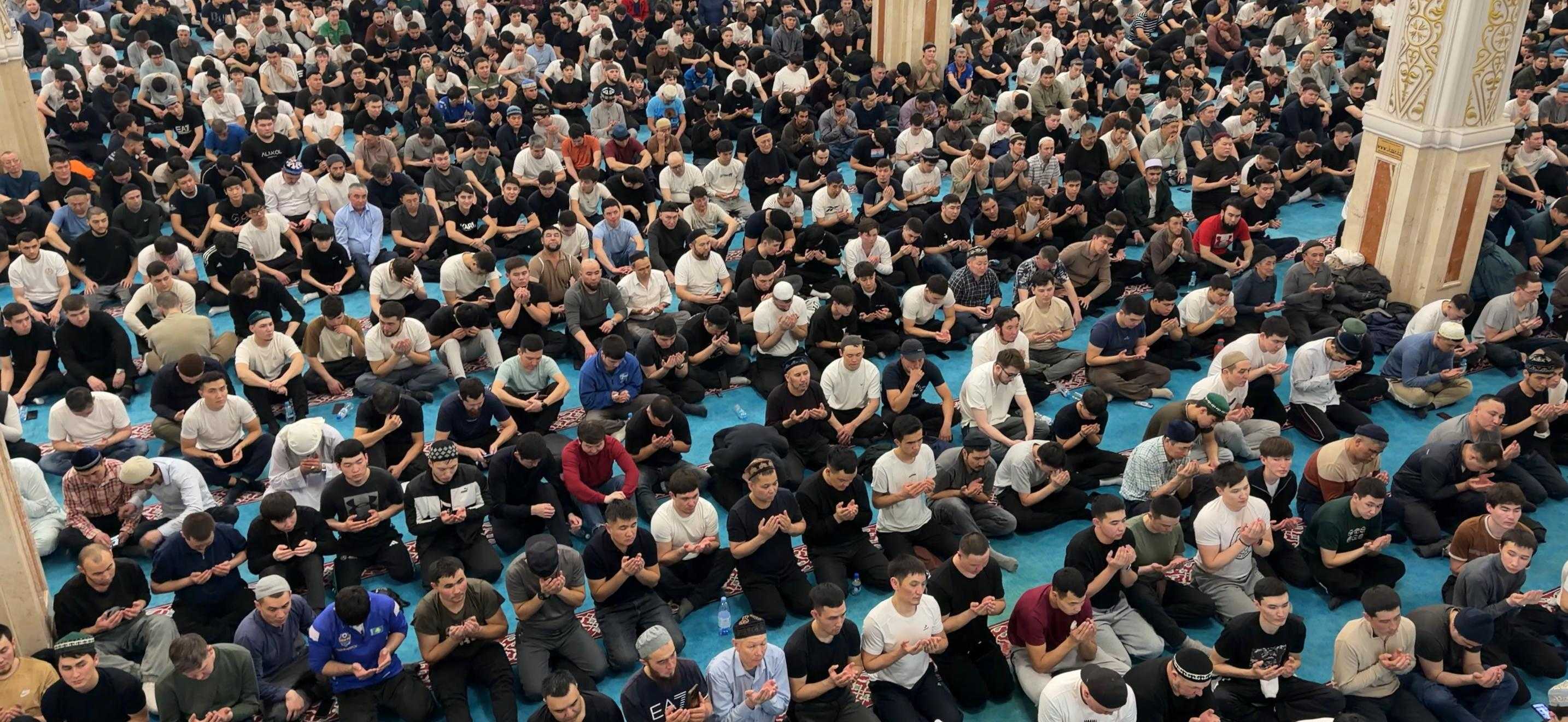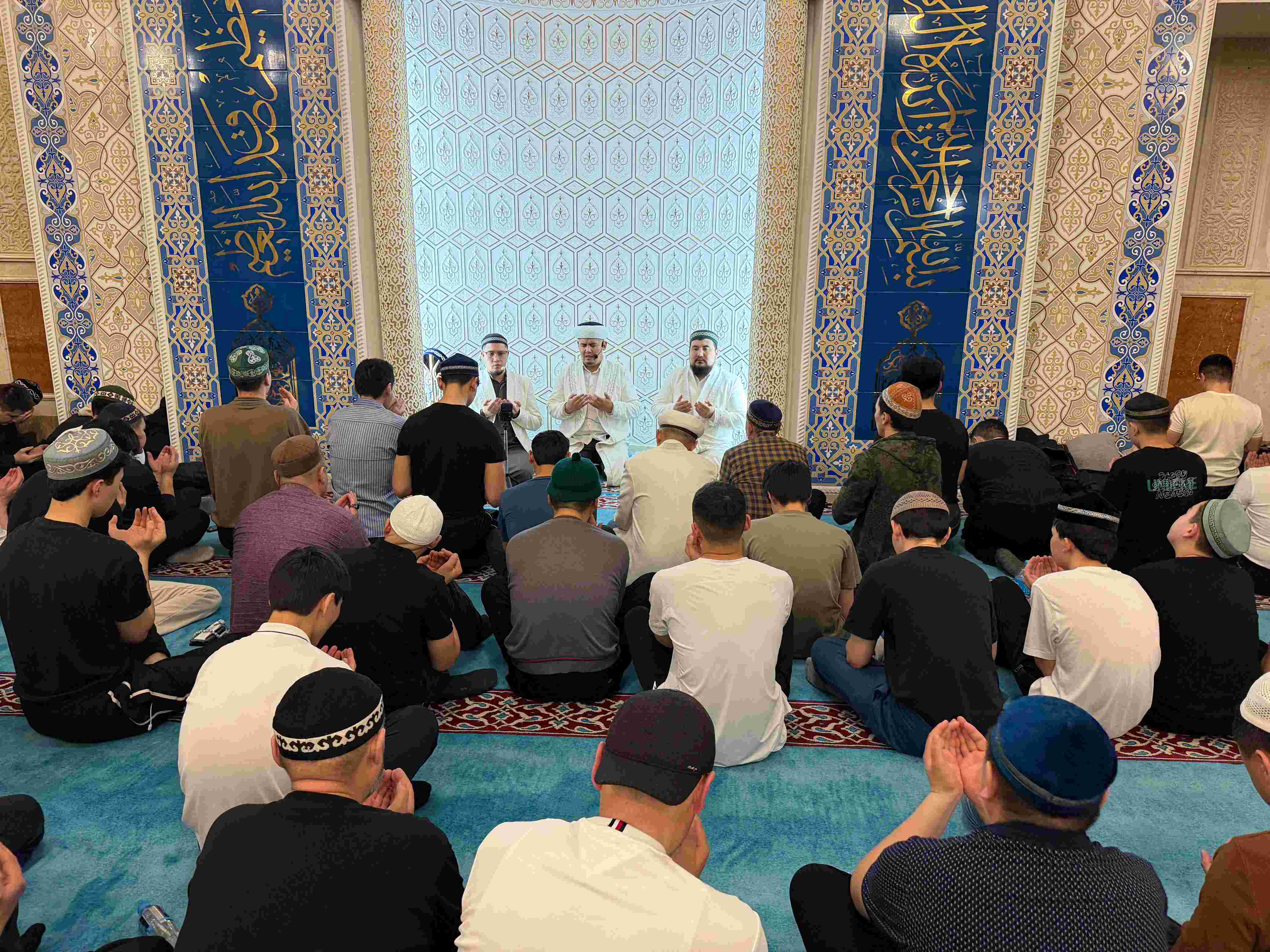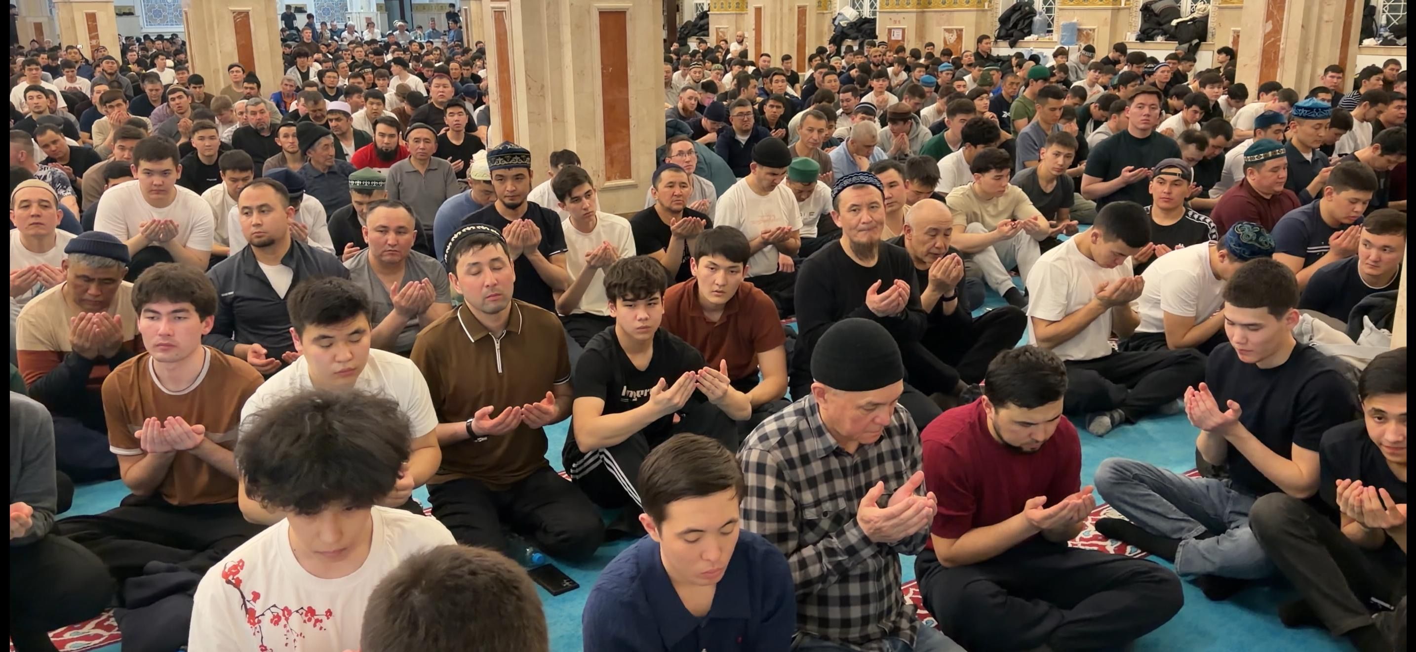 Мыңдаған мұсылман бір сапта тұрып тарауық намазын оқығаннан кейін, Қарағанды облысының бас имамы Естай Айтуғанұлы Құран хатым дұғасын жасады.