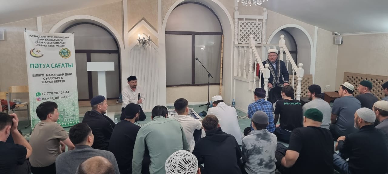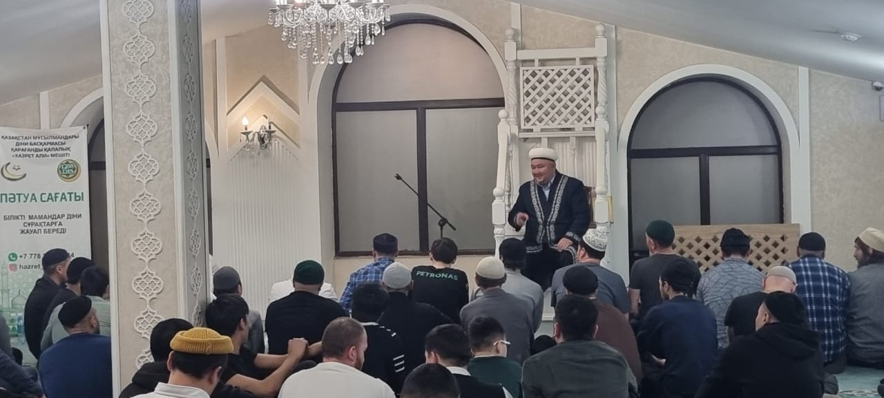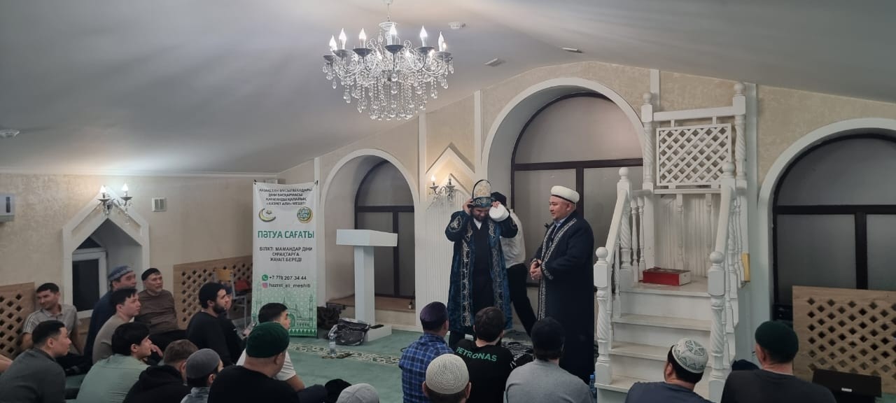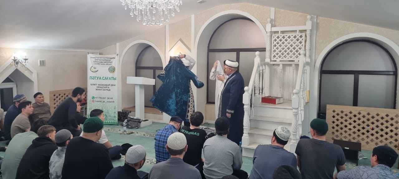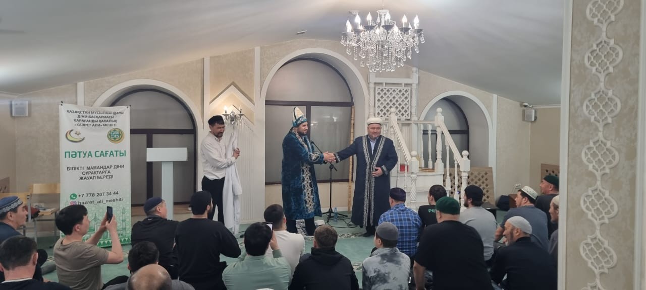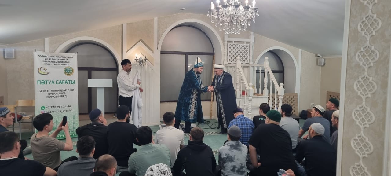 Қарағанды қалалық «Хазірет Али» мешітінің жамағаты қасиетті қадір түнін қарсы алып, тарауық намазын өткізген қариға құрмет көрсетілді.