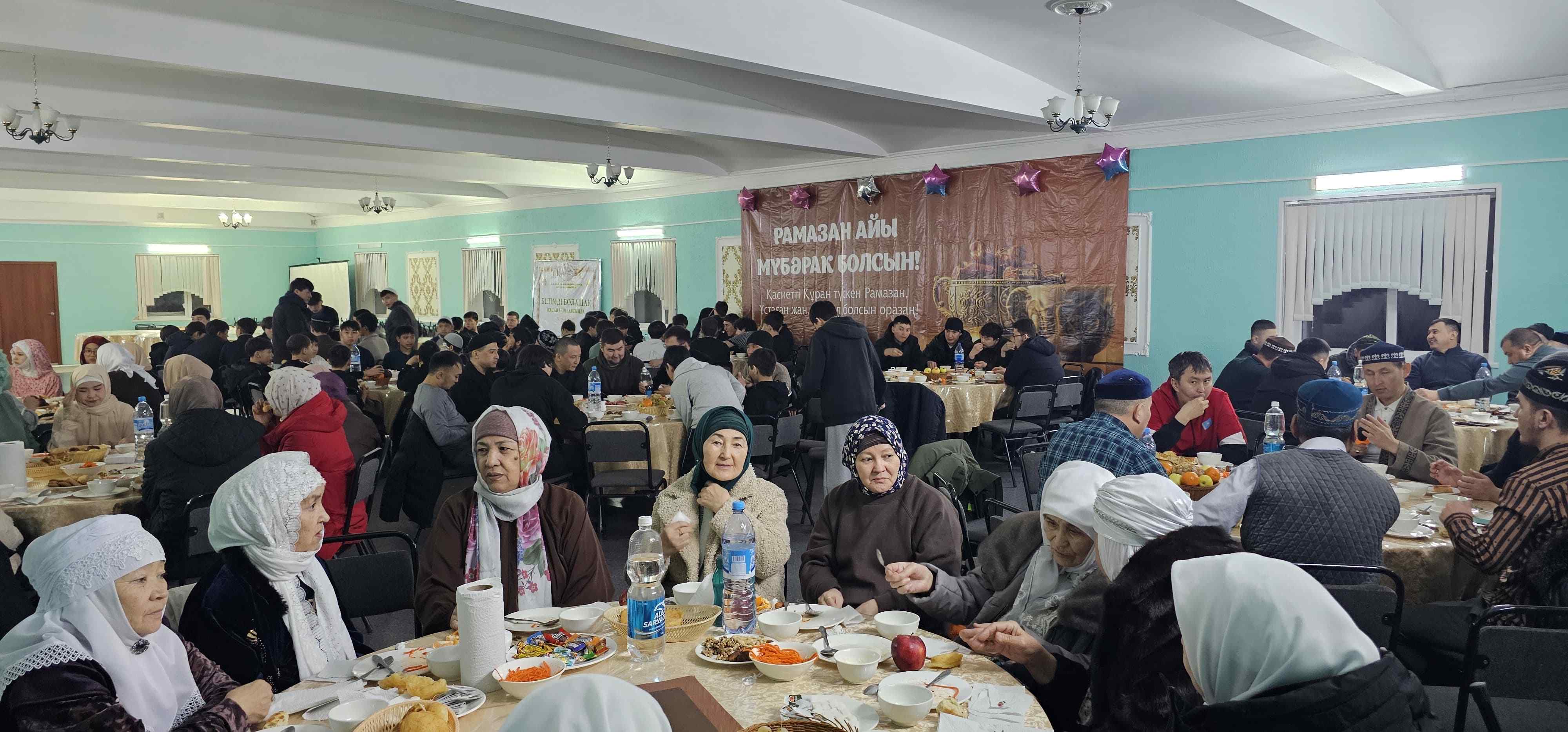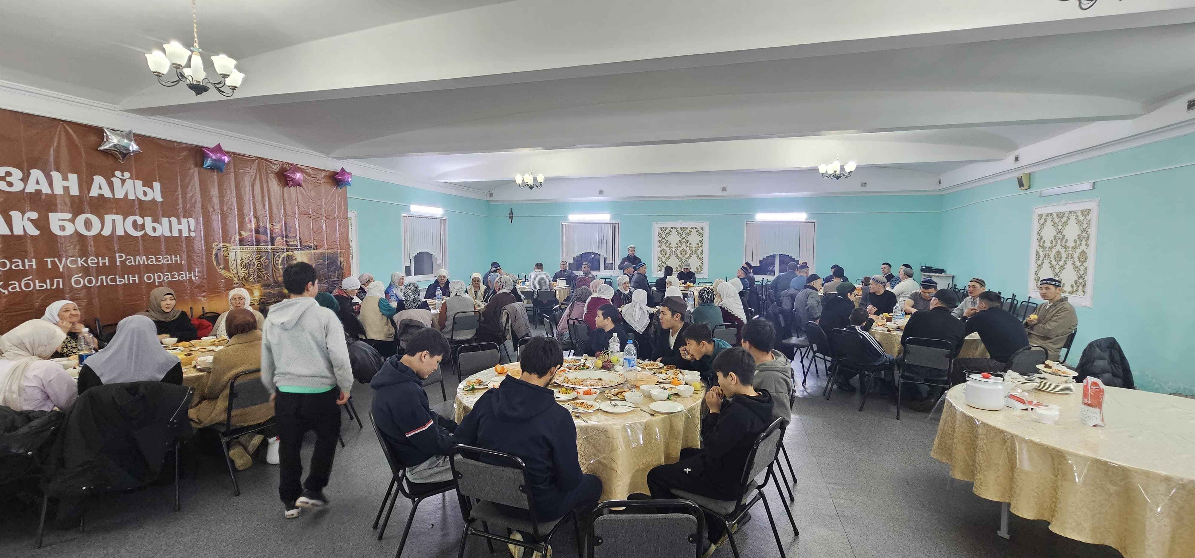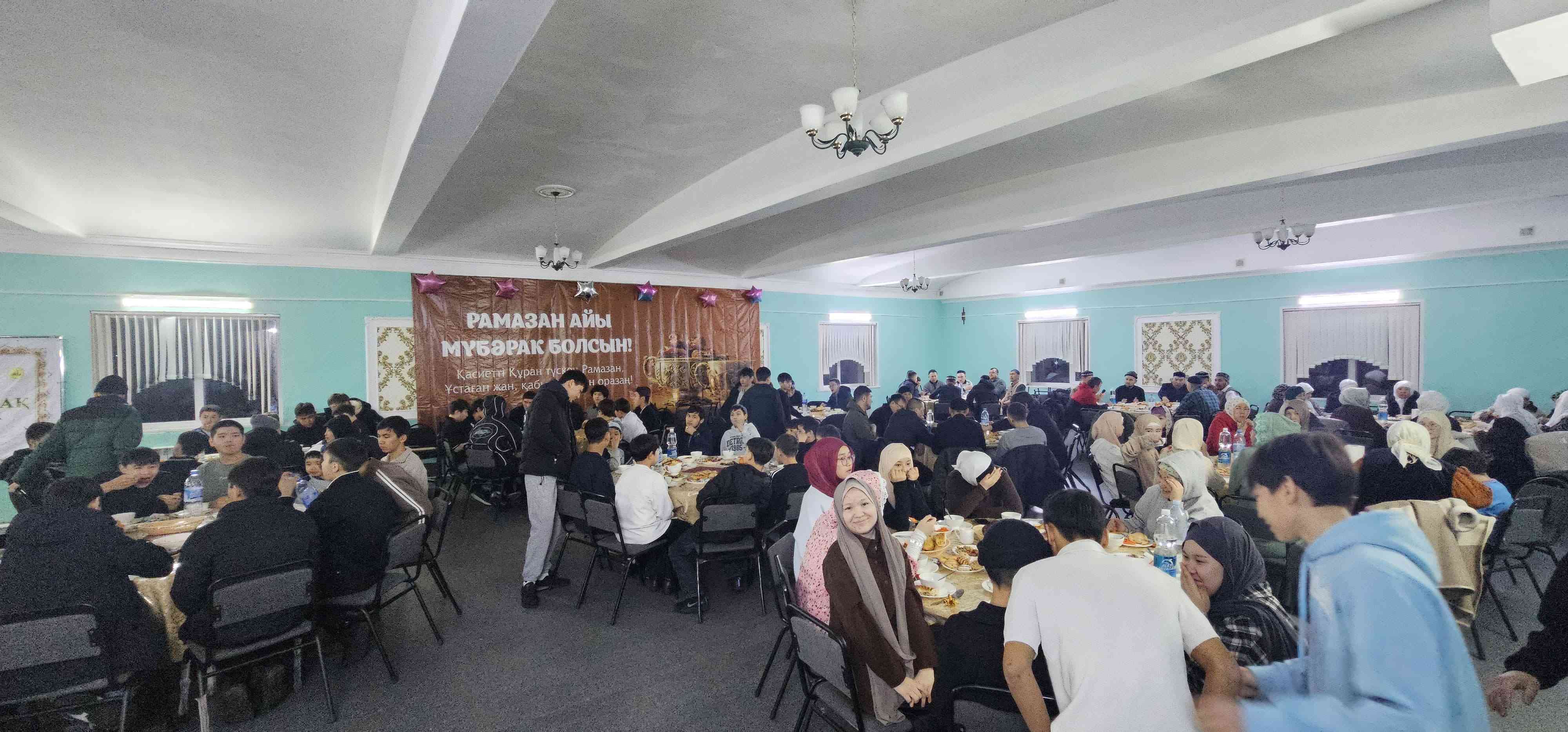 Мешітке жиналған мұсылман жамағатына дастарханы жайылып, мешіт асханасында ауызашар берілді.