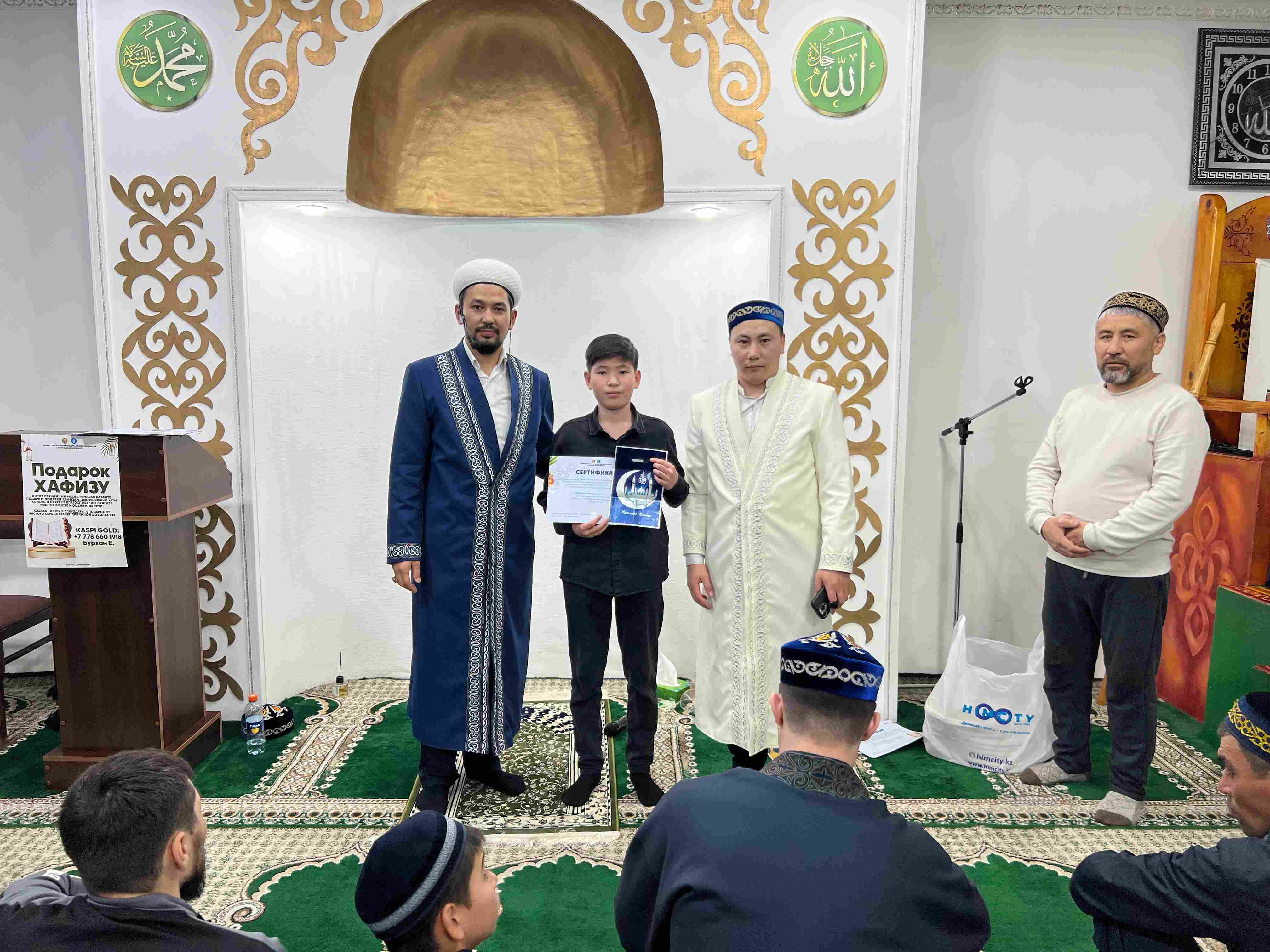 Саран қалалық мешітінде қасиетті Қадір түніне орай ұйымдастырылған салауат айту жарысының жеңімпаздары арнайы марапатталды.