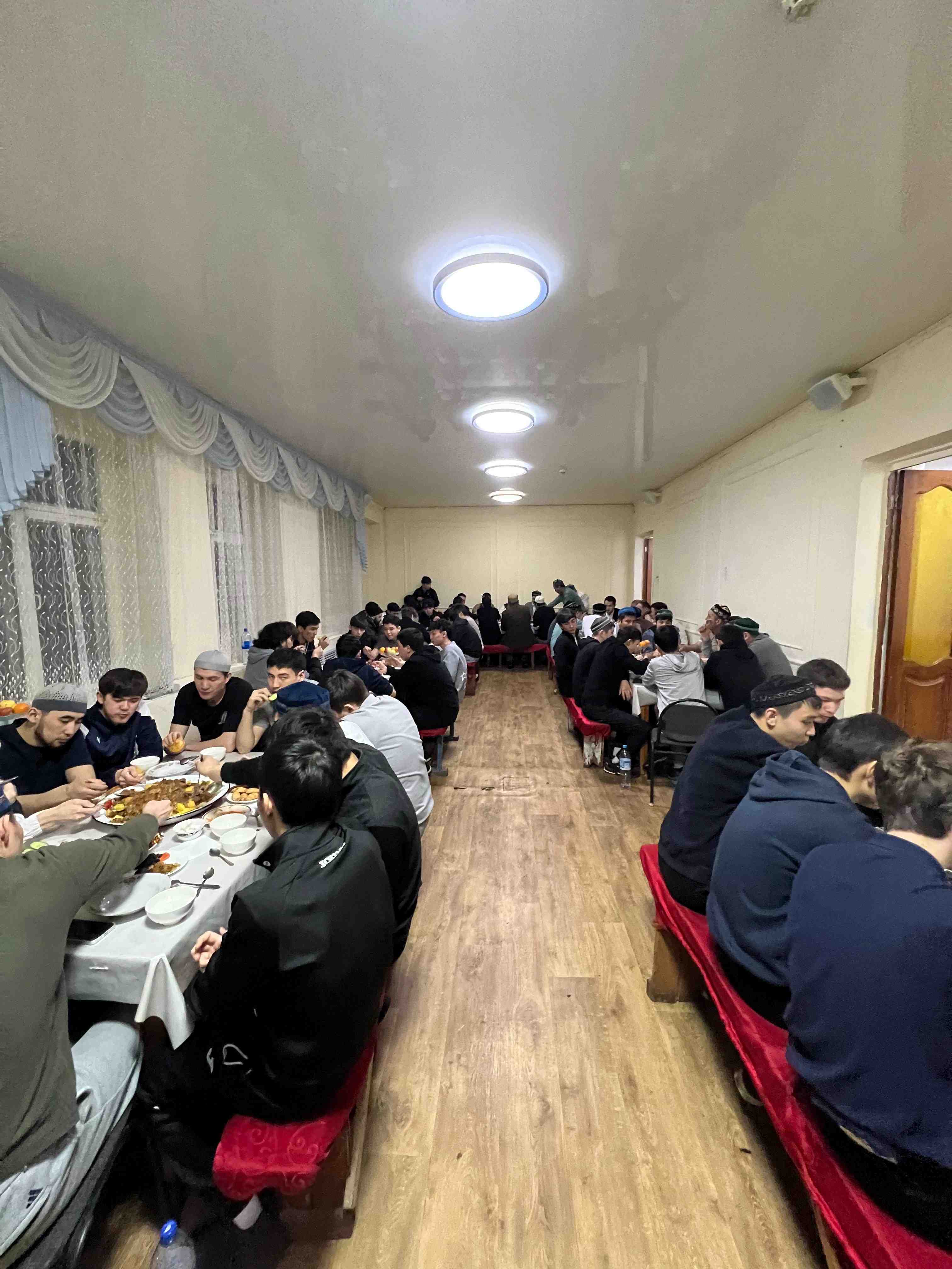 Игі шара барысында мешітке жиналған жамағатқа арнайы дастарқан жайылып, сәрелік ас ұсынылды.
