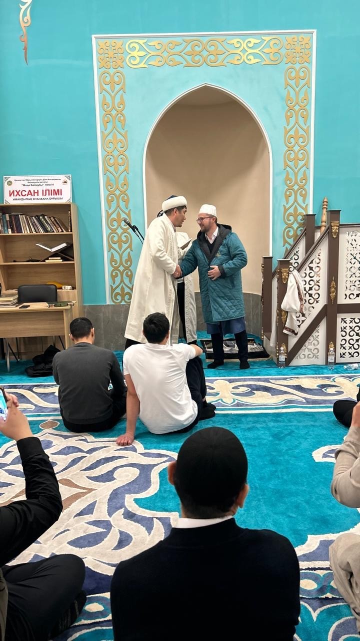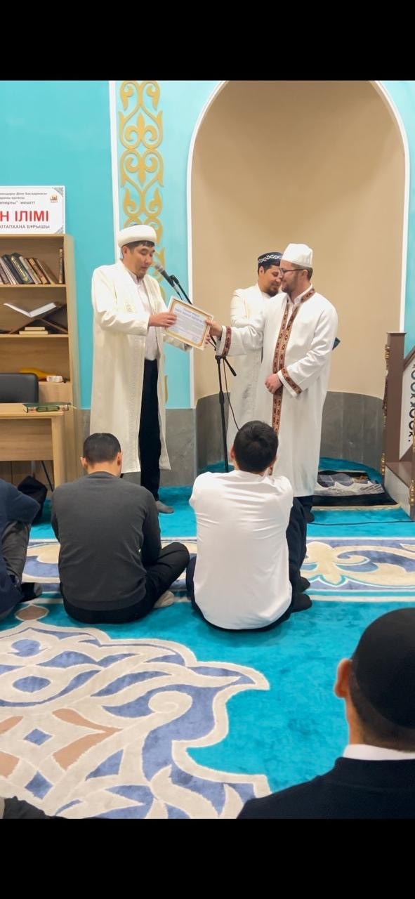 Аудан имамы Митератбек Орынбекұлы қариға ризашылығын білдіріп, алғыс хат табыс етіп, қазақы дәстүр бойынша иығына шапан жапты.