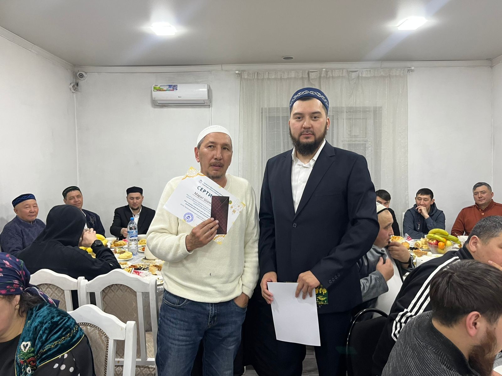 Мешіт өміріне белсене атсалысып, діни дәрістерге тұрақты қатысып, тарауих намазын үзбей оқыған жамағатқа мешіт ұжымының атынан арнайы марапаттар мен ақшалай сыйлықтар берілді.