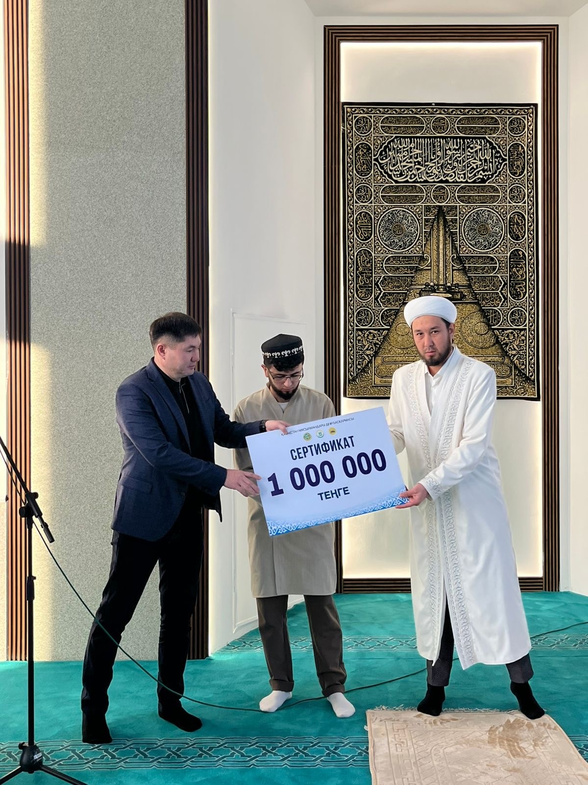 Қасиетті Рамазан айы бойы Осакаровка аудандық мешітінде тарауық намазын оқып, Құран хатым жасаған қариға мешіт имамы Құдайберген Серікұлы қаржылай 1 000 000 теңге сертификат табыстады. Сондай-ақ, қаридың иығына қазақы дәстүрмен шапан жабылып, жамағат шынайы ризашылықтарын білдірді.