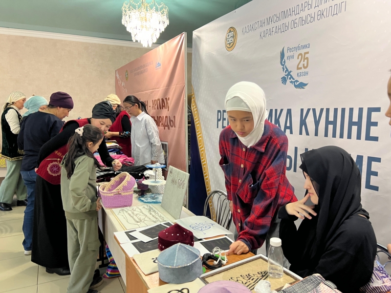 Қарағанды облысы бойынша  «Әйел-қыздар» секторы мен «Дін мен дәстүр» бағыты аясында ұйымдастырылған шара барысында жәрмеңкеге келген қонақтар қолөнершілер мен коллиграфия шәкірттерінің еңбектерін тамашалады.
