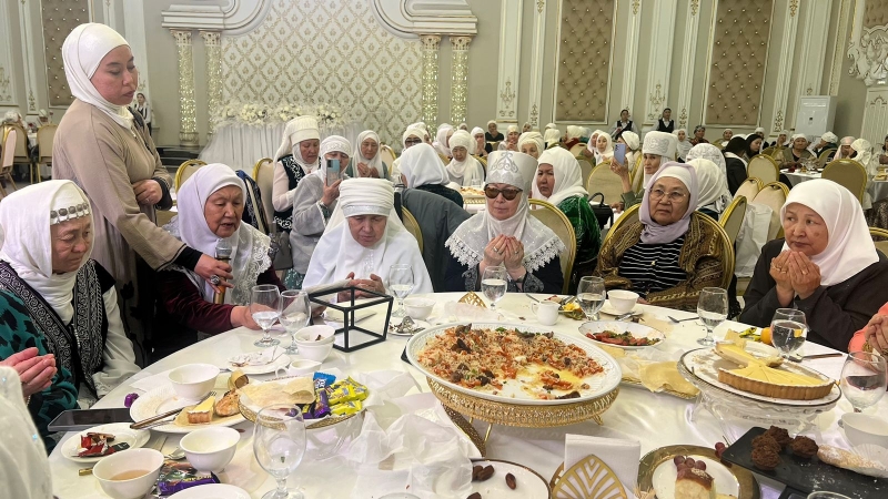 Рамазанмен қоштасу хұтпасы оқылып, әжелер қауымы ақ батасын берді.