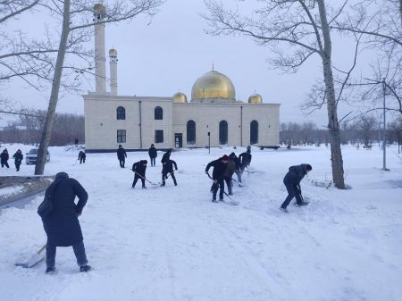 «ТӨЛЕУТАЙ АТА» МЕШІТІНІҢ ЖАМАҒАТЫ ҚАР ТАЗАЛЫҒЫН ЖҮРГІЗДІ